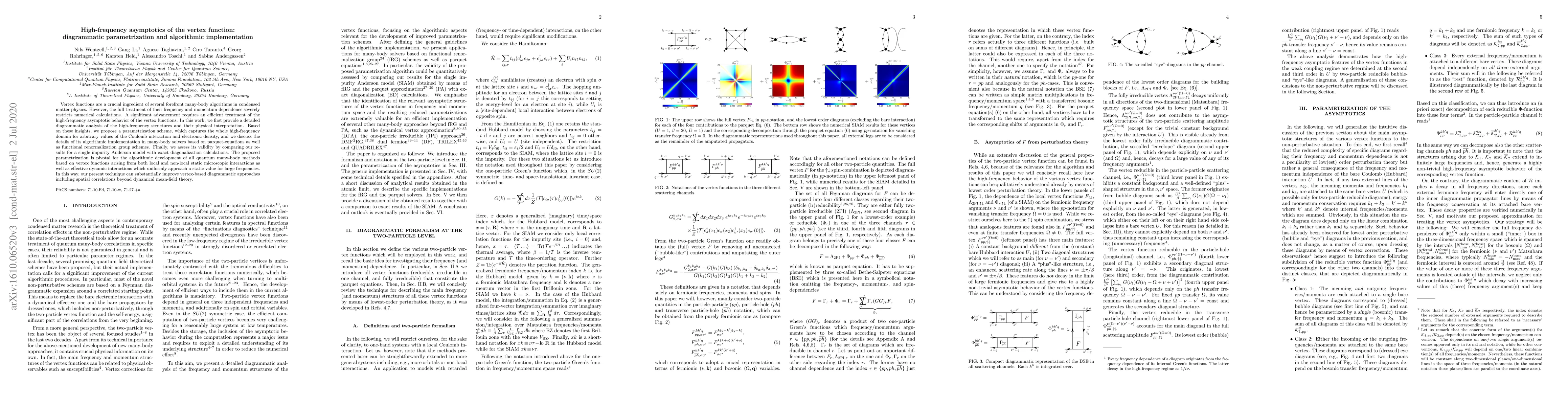 Vertex functions are a crucial ingredient of several forefront many-body algorithms in condensed matter physics. However, the full treatment of their frequency and momentum dependence severely restricts numerical calculations. A significant advancement requires an efficient treatment of the high-frequency asymptotic behavior of the vertex functions. In this work, we first provide a detailed diagrammatic analysis of the high-frequency structures and their physical interpretation. Based on these insights, we propose a parametrization scheme, which captures the whole high-frequency domain for arbitrary values of the Coulomb interaction and electronic density, and we discuss the details of its algorithmic implementation in many-body solvers based on parquet-equations as well as functional renormalization group schemes. Finally, we assess its validity by comparing our results for a single impurity Anderson model with exact diagonalization calculations. The proposed parametrization is pivotal for the algorithmic development of all quantum many-body methods based on vertex functions arising from both local and non-local static microscopic interactions as well as effective dynamic interactions which uniformly approach a static value for large frequencies. In this way, our present technique can substantially improve vertex-based diagrammatic approaches including spatial correlations beyond dynamical mean-field theory.
