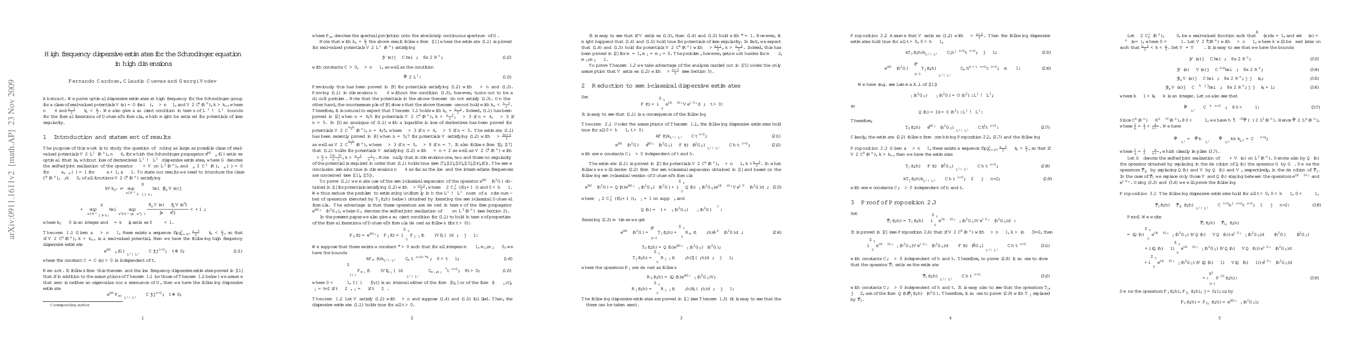 This paper proves optimal high-frequency dispersive estimates for the Schrödinger equation with real-valued potentials that decay at a rate faster than $1/|x|$ in high dimensions. It also provides a sufficient condition for less regular potentials based on $L^1\to L^\infty$ bounds of Duhamel's formula iterations.