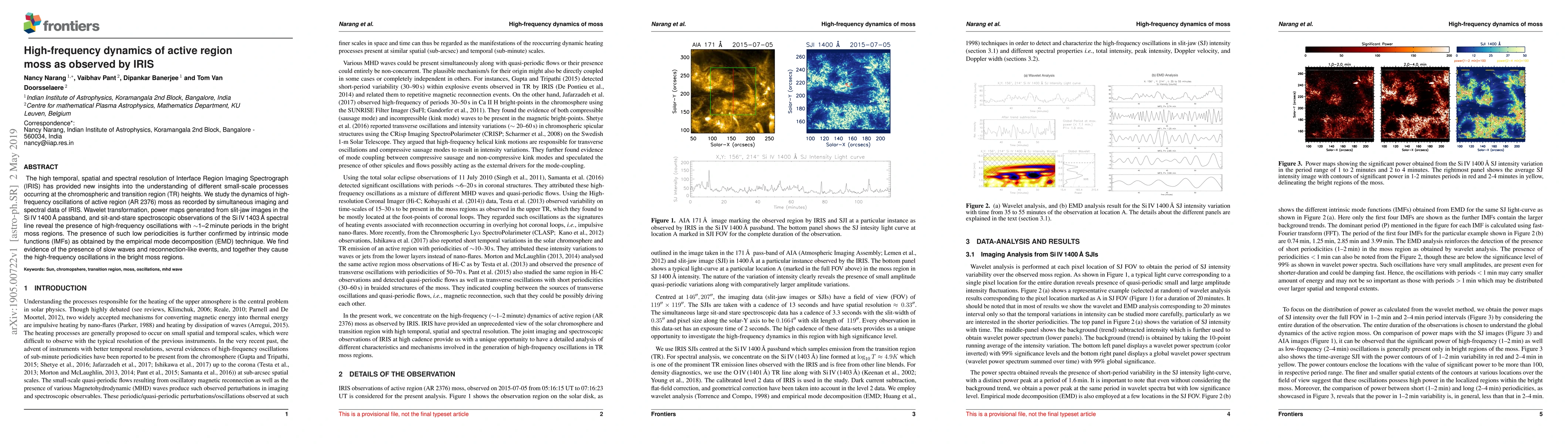 The IRIS observations reveal high-frequency oscillations in active region moss with periods of 1-2 minutes, driven by slow waves and reconnection events. These findings enhance our understanding of small-scale chromospheric and transition region dynamics.