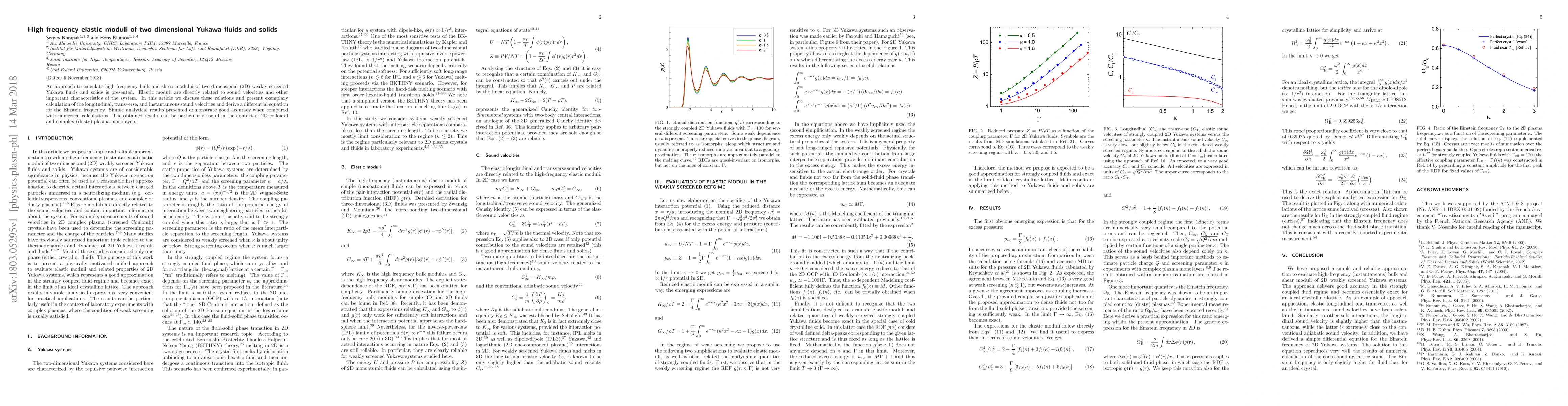 Researchers developed a method to calculate high-frequency elastic moduli of 2D Yukawa fluids and solids, showing good accuracy with simple analytical results that can aid in understanding properties of colloidal and dusty plasma monolayers.