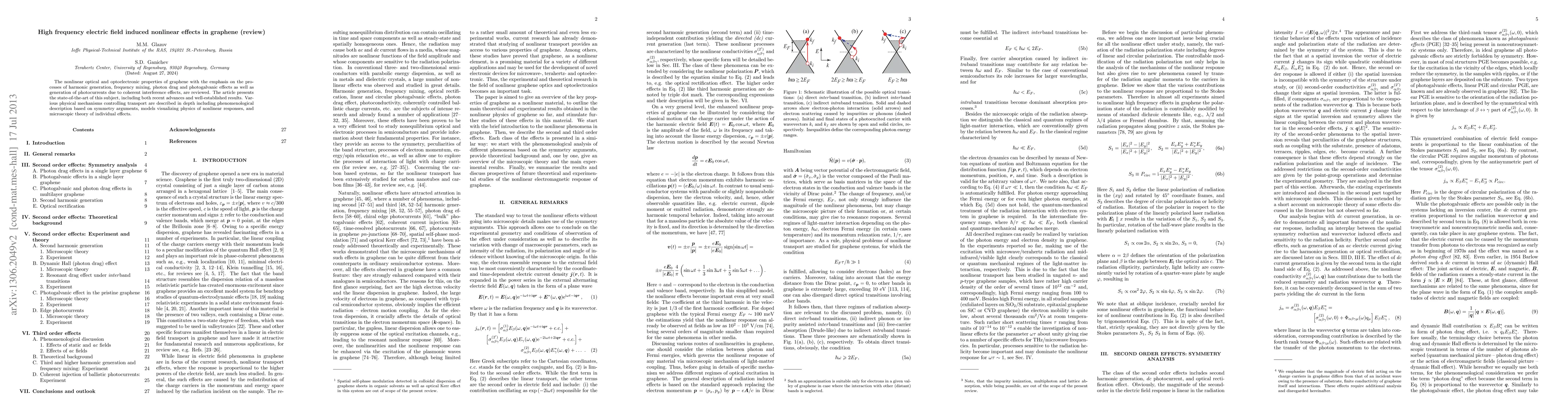 The nonlinear optical and optoelectronic properties of graphene with the emphasis on the processes of harmonic generation, frequency mixing, photon drag and photogalvanic effects as well as generation of photocurrents due to coherent interference effects, are reviewed. The article presents the state-of-the-art of this subject, including both recent advances and well-established results. Various physical mechanisms controlling transport are described in depth including phenomenological description based on symmetry arguments, models visualizing physics of nonlinear responses, and microscopic theory of individual effects.