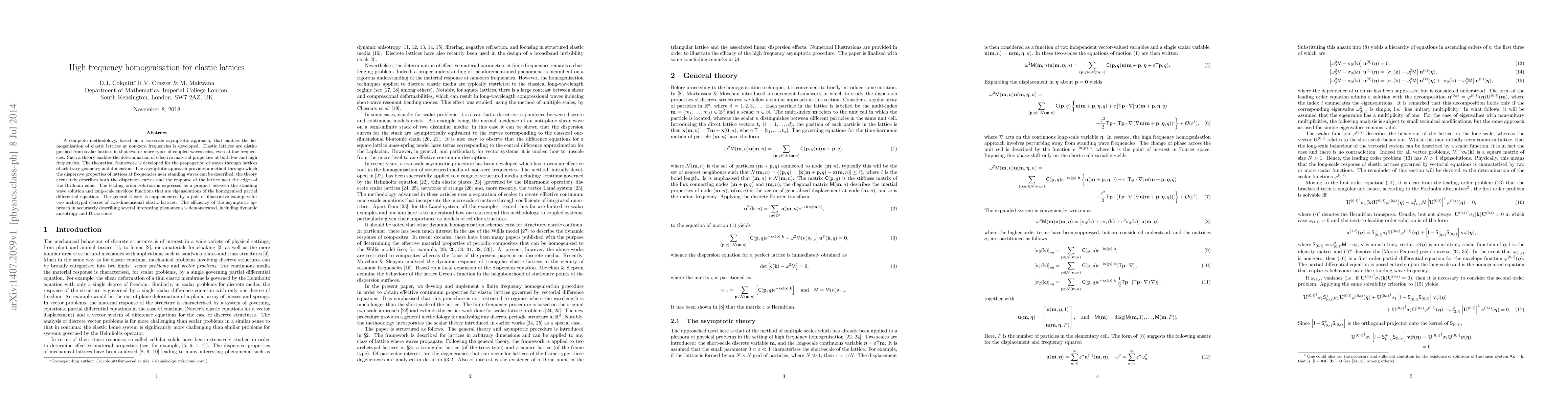 Researchers develop a methodology to homogenize elastic lattices at non-zero frequencies, enabling accurate determination of effective material properties at both low and high frequencies.