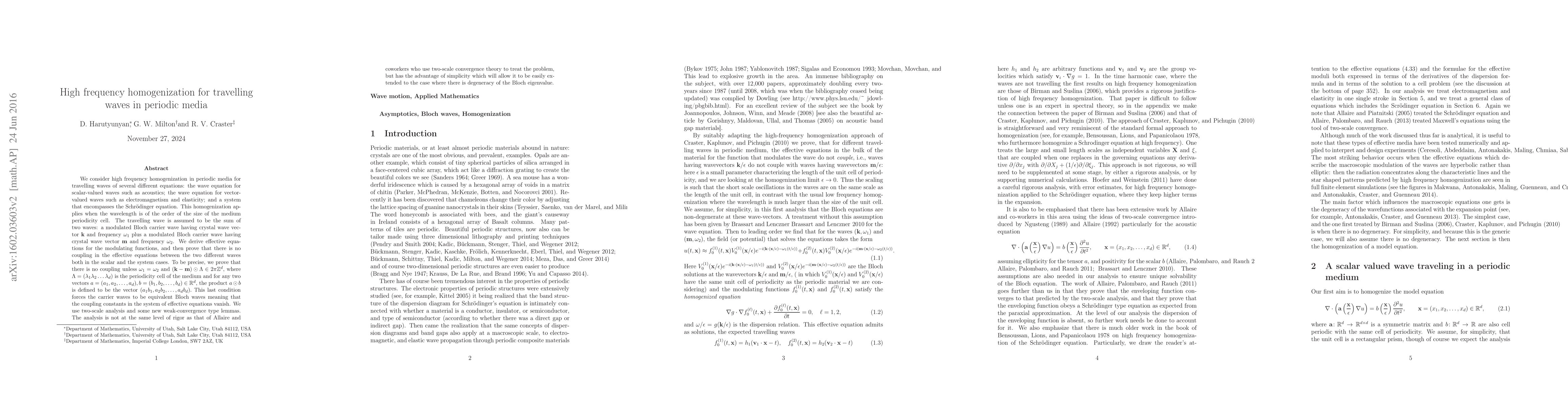 This paper studies high frequency homogenization of travelling waves in periodic media for various wave equations, showing effective decoupling of modulated Bloch waves unless specific conditions on their frequencies and wave vectors are met. It employs two-scale analysis with new weak-convergence lemmas, offering simplicity and potential for extension to degenerate Bloch eigenvalues.