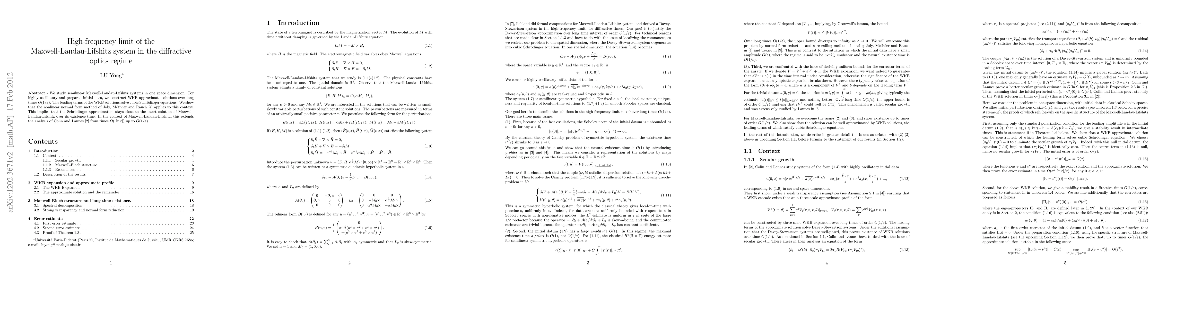 This paper constructs WKB approximate solutions for semilinear Maxwell-Landau-Lifshitz systems with highly oscillatory initial data, showing that the Schrödinger approximation remains close to the exact solution over long times. The nonlinear normal form method extends the analysis to times $O(1/\e)$, improving upon previous results.