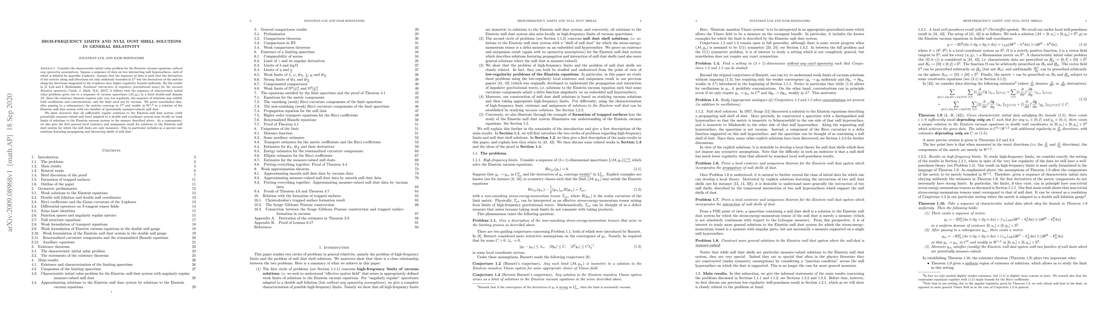 This paper investigates high-frequency limits and null dust shell solutions in general relativity, proving that sequences of vacuum spacetimes converge to solutions of the Einstein-null dust system, even when the null dusts are measure-valued. It also establishes local existence and uniqueness for such solutions.