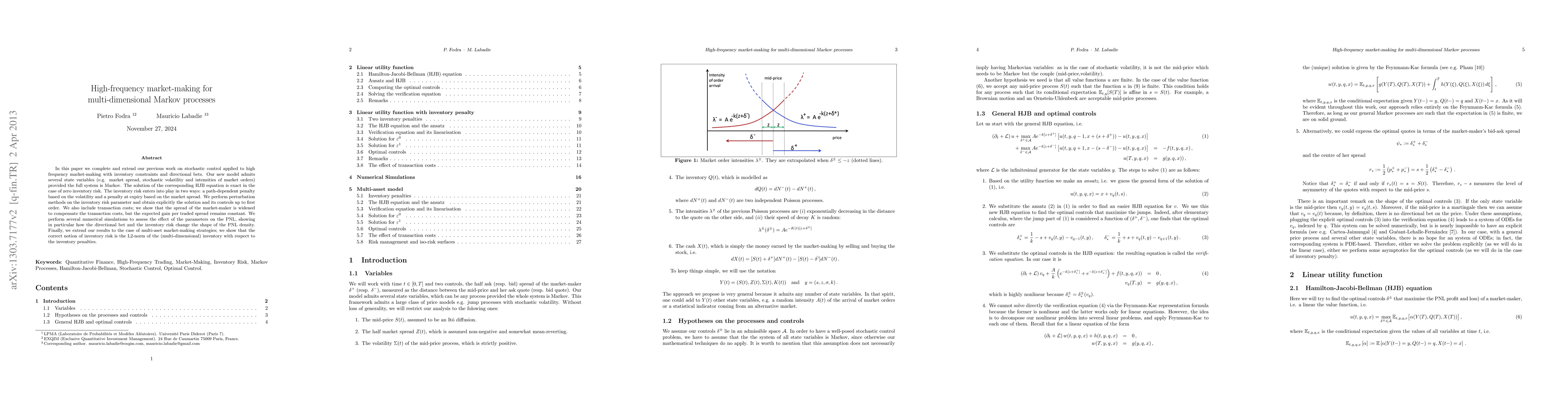 This paper extends previous stochastic control models for high-frequency market-making, incorporating multiple state variables and exact solutions for zero inventory risk. It introduces inventory risk penalties and transaction costs, showing how they affect profit and loss distributions, and extends the model to multi-asset strategies.