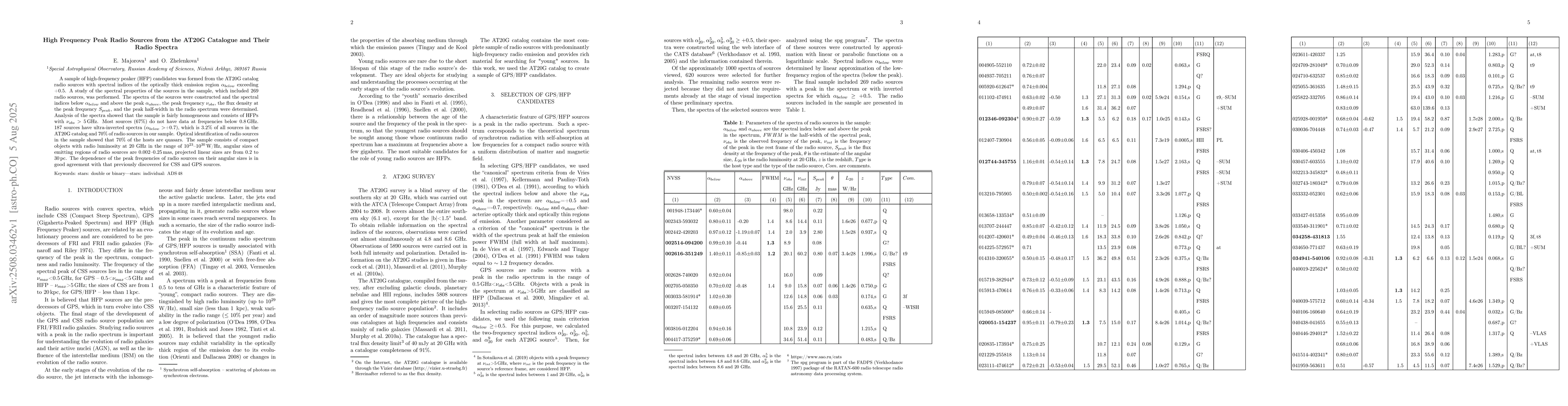 A sample of high-frequency peaker (HFP) candidates was formed from the AT20G catalog radio sources with spectral indices of the optically thick emission region $\alpha_{below}$ exceeding +0.5. A study of the spectral properties of the sources in the sample, which included 269 radio sources, was performed. The spectra of the sources were constructed and the spectral indices below $\alpha_{below}$ and above the peak $\alpha_{above}$, the peak frequency $\nu_{obs}$, the flux density at the peak frequency $S_{peak}$, and the peak half-width in the radio spectrum were determined. Analysis of the spectra showed that the sample is fairly homogeneous and consists of HFPs with $\nu_{obs}>5$ GHz. Most sources (67%) do not have data at frequencies below 0.8 GHz. 187 sources have ultra-inverted spectra ($\alpha_{below}>$+0.7), which is 3.2% of all sources in the AT20G catalog and 70% of radio sources in our sample. Optical identification of radio sources in the sample showed that 70% of the hosts are quasars. The sample consists of compact objects with radio luminosity at 20 GHz in the range of $10^{23}$-$10^{30}$ W/Hz, angular sizes of emitting regions of radio sources are 0.002-0.25 mas, projected linear sizes are from 0.2 to 30 pc. The dependence of the peak frequencies of radio sources on their angular sizes is in good agreement with that previously discovered for CSS and GPS sources.