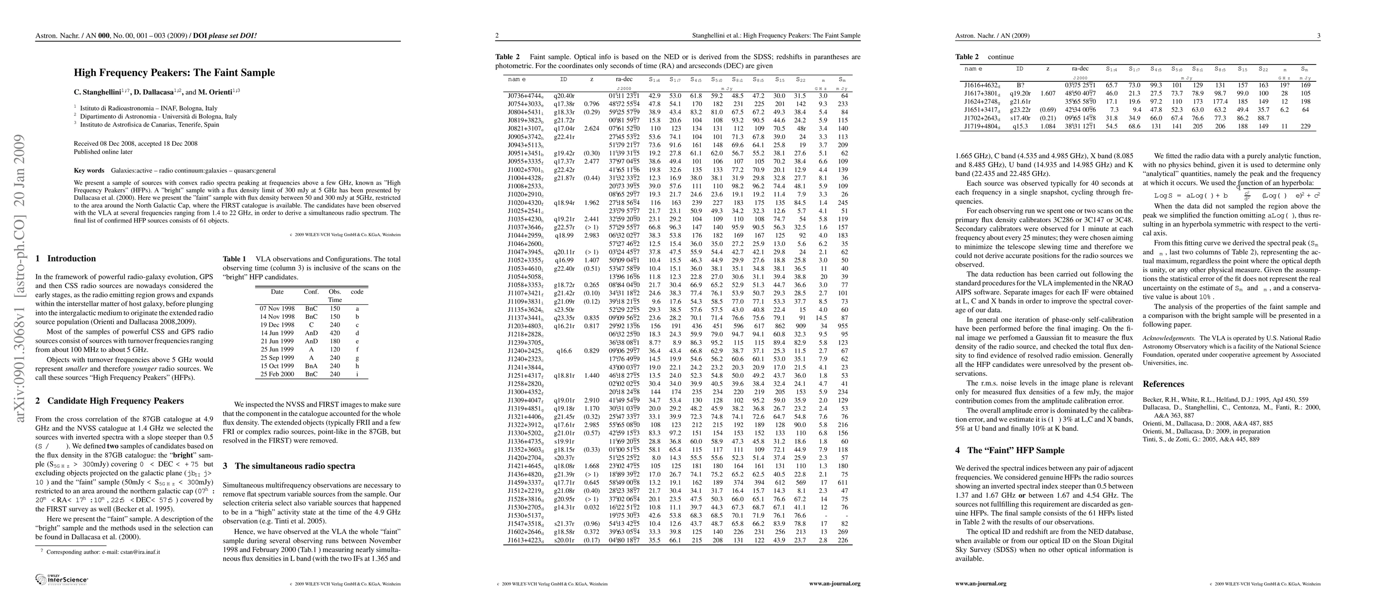 We present a sample of sources with convex radio spectra peaking at frequencies above a few GHz, known as "High Frequency Peakers" (HFPs). A "bright" sample with a flux density limit of 300 mJy at 5 GHz has been presented by Dallacasa et al. (2000). Here we present the "faint" sample with flux density between 50 and 300 mJy at 5GHz, restricted to the area around the North Galactic Cap, where the FIRST catalogue is available. The candidates have been observed with the VLA at several frequencies ranging from 1.4 to 22 GHz, in order to derive a simultaneous radio spectrum. The final list of confirmed HFP sources consists of 61 objects.