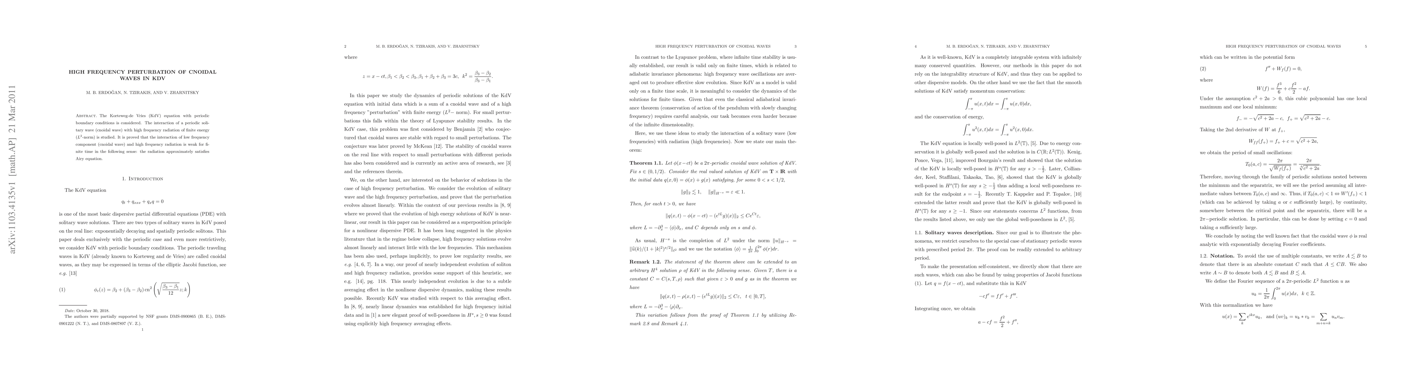 The KdV equation is analyzed for high frequency perturbation of a periodic solitary wave, showing that the interaction with high frequency radiation is weak over finite time, approximating Airy equation behavior.