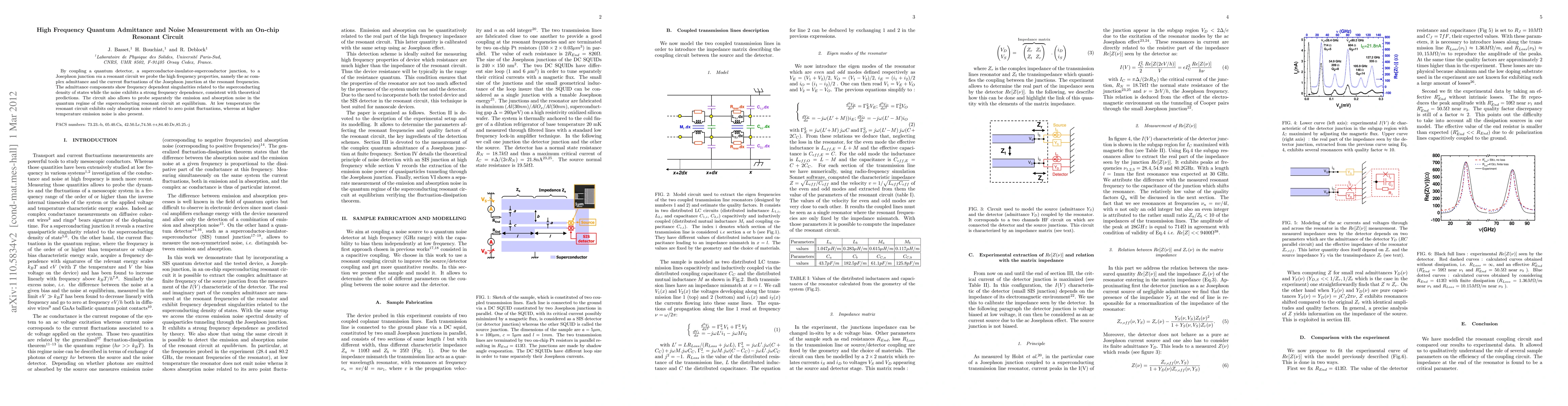 This paper investigates the high-frequency quantum admittance and noise characteristics of a Josephson junction coupled to a superconductor-insulator-superconductor junction via a resonant circuit. The study reveals frequency-dependent singularities in admittance and strong frequency-dependent noise, consistent with theoretical predictions, and distinguishes emission and absorption noise in the quantum regime.