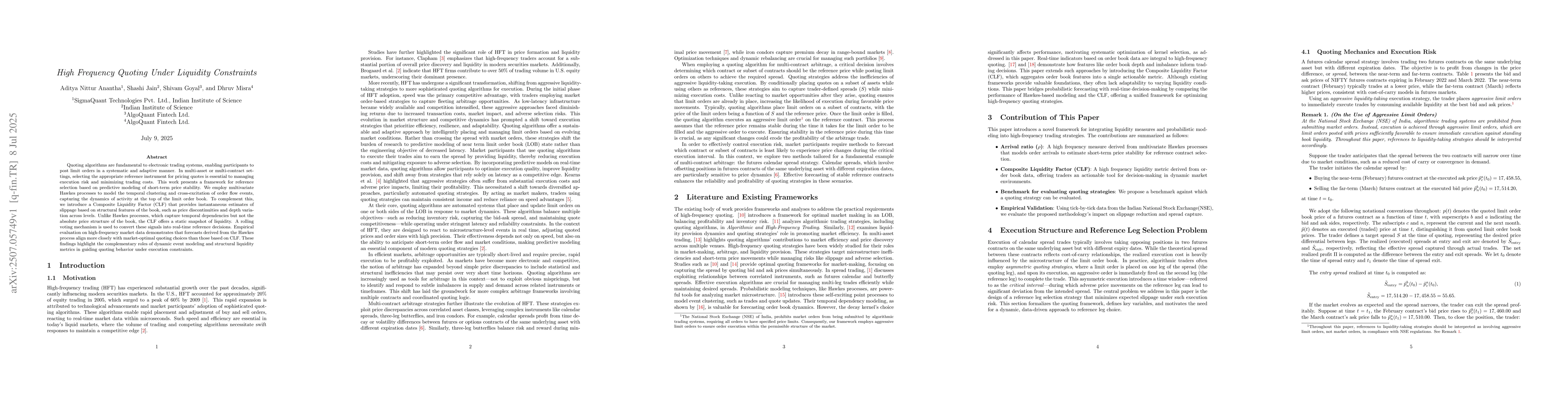 Quoting algorithms are fundamental to electronic trading systems, enabling participants to post limit orders in a systematic and adaptive manner. In multi-asset or multi-contract settings, selecting the appropriate reference instrument for pricing quotes is essential to managing execution risk and minimizing trading costs. This work presents a framework for reference selection based on predictive modeling of short-term price stability. We employ multivariate Hawkes processes to model the temporal clustering and cross-excitation of order flow events, capturing the dynamics of activity at the top of the limit order book. To complement this, we introduce a Composite Liquidity Factor (CLF) that provides instantaneous estimates of slippage based on structural features of the book, such as price discontinuities and depth variation across levels. Unlike Hawkes processes, which capture temporal dependencies but not the absolute price structure of the book, the CLF offers a static snapshot of liquidity. A rolling voting mechanism is used to convert these signals into real-time reference decisions. Empirical evaluation on high-frequency market data demonstrates that forecasts derived from the Hawkes process align more closely with market-optimal quoting choices than those based on CLF. These findings highlight the complementary roles of dynamic event modeling and structural liquidity metrics in guiding quoting behavior under execution constraints.