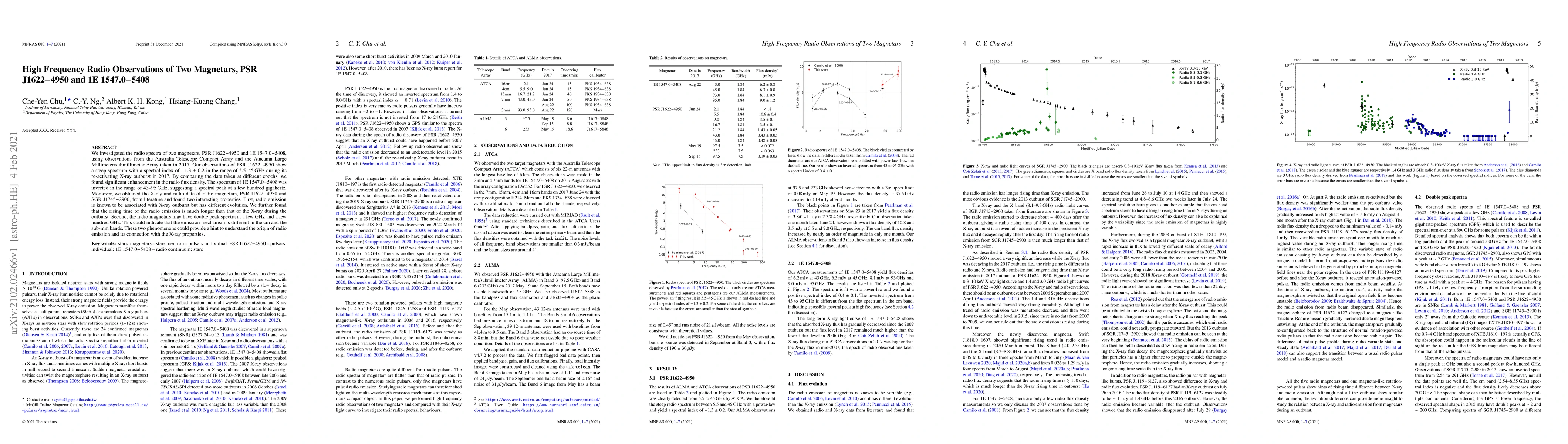The study observed magnetars PSR J1622$-$4950 and 1E 1547.0$-$5408 using radio telescopes, revealing PSR J1622$-$4950's steep spectrum during an X-ray outburst with enhanced radio flux, and 1E 1547.0$-$5408's inverted spectrum suggesting a spectral peak in the GHz range. Analysis of multiple radio magnetars indicates radio emission differs from X-ray outbursts, with longer rising times for radio emission, and potential double-peak spectra at GHz and sub-mm bands, hinting at distinct emission mechanisms in these bands.
