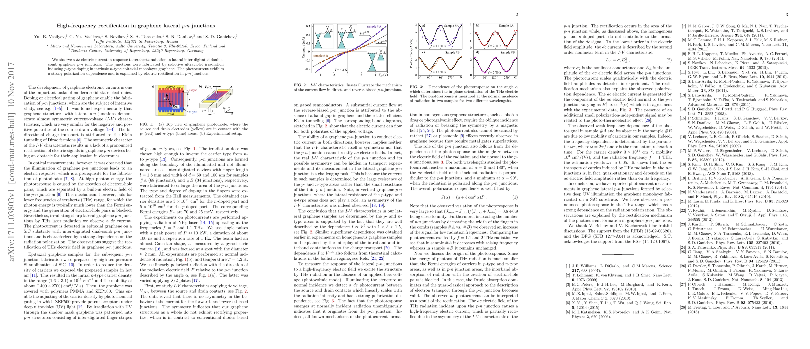 The study demonstrates a dc current in graphene p-n junctions under terahertz radiation, revealing strong polarization dependence due to rectification effects. This is achieved via selective ultraviolet irradiation inducing p-type doping in intrinsic n-type graphene.
