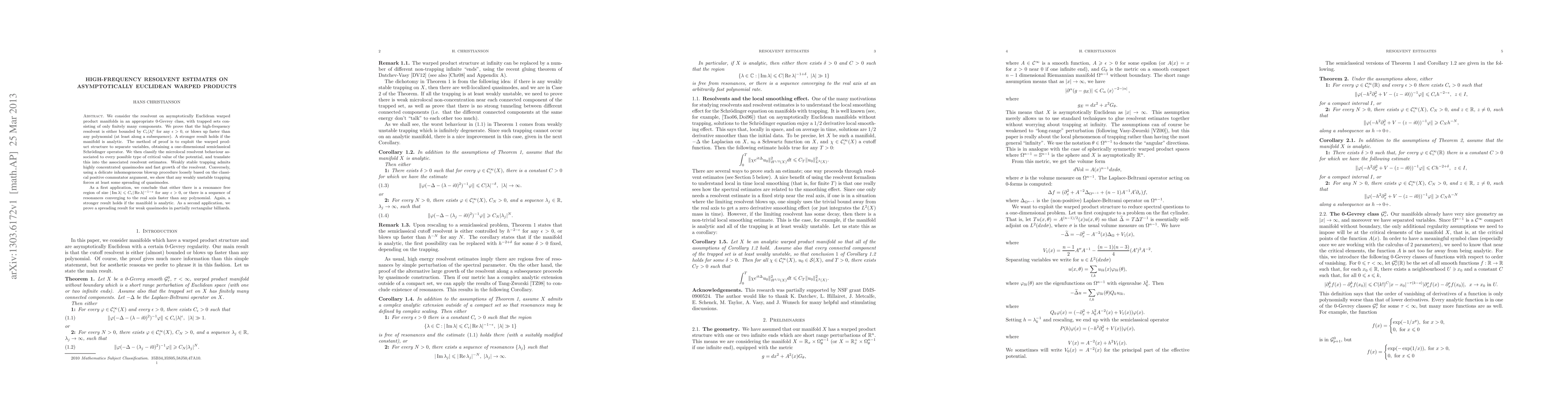 We consider the resolvent on asymptotically Euclidean warped product manifolds in an appropriate 0-Gevrey class, with trapped sets consisting of only finitely many components. We prove that the high-frequency resolvent is either bounded by $C_\epsilon |\lambda|^\epsilon$ for any $\epsilon>0$, or blows up faster than any polynomial (at least along a subsequence). A stronger result holds if the manifold is analytic. The method of proof is to exploit the warped product structure to separate variables, obtaining a one-dimensional semiclassical Schr\"odinger operator. We then classify the microlocal resolvent behaviour associated to every possible type of critical value of the potential, and translate this into the associated resolvent estimates. Weakly stable trapping admits highly concentrated quasimodes and fast growth of the resolvent. Conversely, using a delicate inhomogeneous blowup procedure loosely based on the classical positive commutator argument, we show that any weakly unstable trapping forces at least some spreading of quasimodes. As a first application, we conclude that either there is a resonance free region of size $| \Im \lambda | \leq C_\epsilon | \Re \lambda |^{-1-\epsilon}$ for any $\epsilon>0$, or there is a sequence of resonances converging to the real axis faster than any polynomial. Again, a stronger result holds if the manifold is analytic. As a second application, we prove a spreading result for weak quasimodes in partially rectangular billiards.