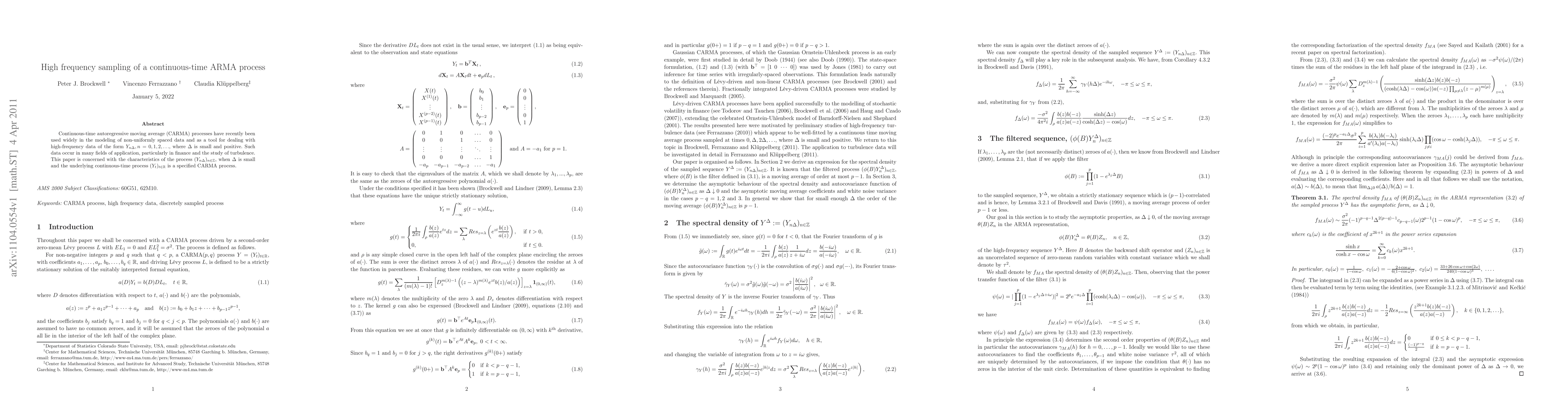This paper explores high-frequency sampling of continuous-time ARMA processes, focusing on characteristics when data is uniformly spaced with a small time gap. It provides insights into the modeling of non-uniformly spaced data in various fields, including finance and turbulence studies.