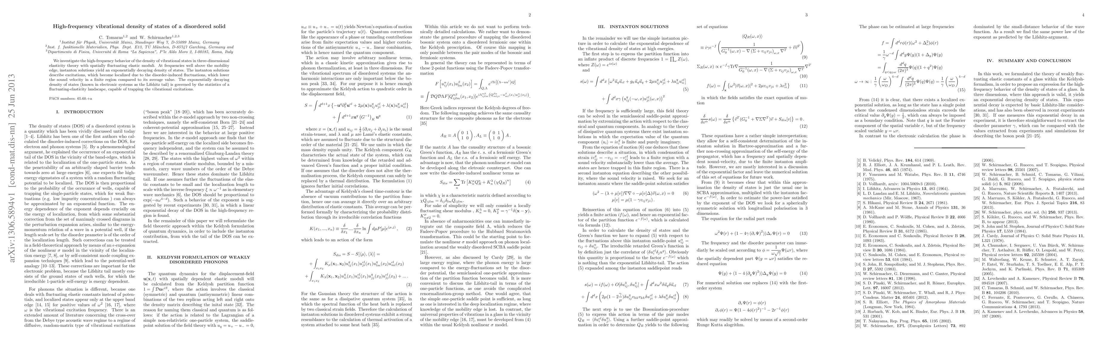 The research examines high-frequency vibrations in disordered solids with fluctuating elastic properties. Using instanton solutions, it finds an exponentially decaying density of states, akin to the Lifshitz tail in electronics, indicating localized excitations due to disorder-induced fluctuations reducing local sound velocity.
