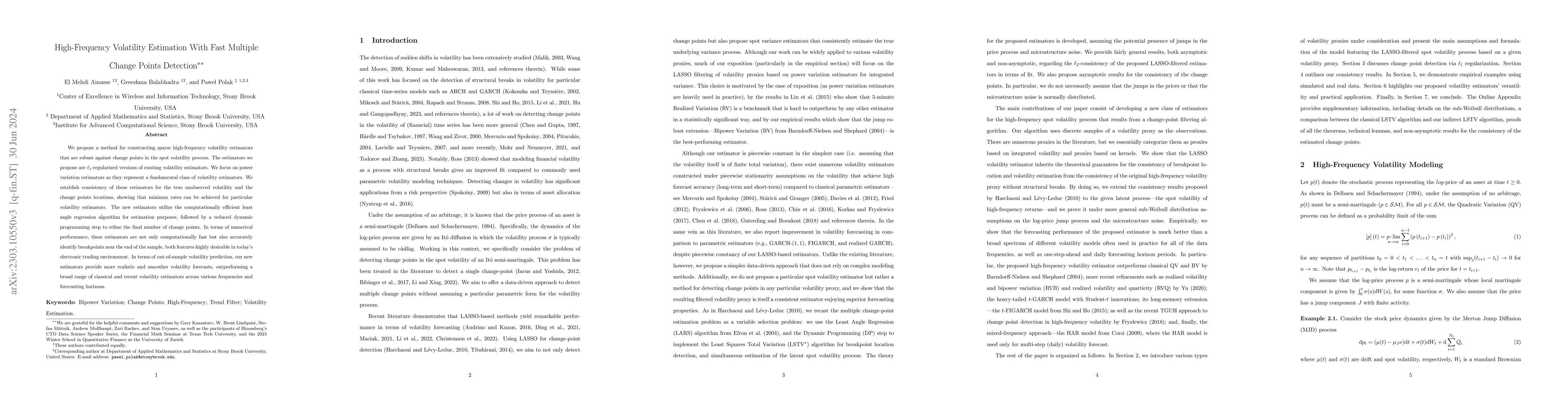 This paper introduces $\ell_1$-regularized high-frequency volatility estimators that are robust to volatility change points, employing computationally efficient least angle regression and dynamic programming for accurate detection and refined change points. These new estimators outperform existing methods in both computational speed and out-of-sample volatility forecasting.