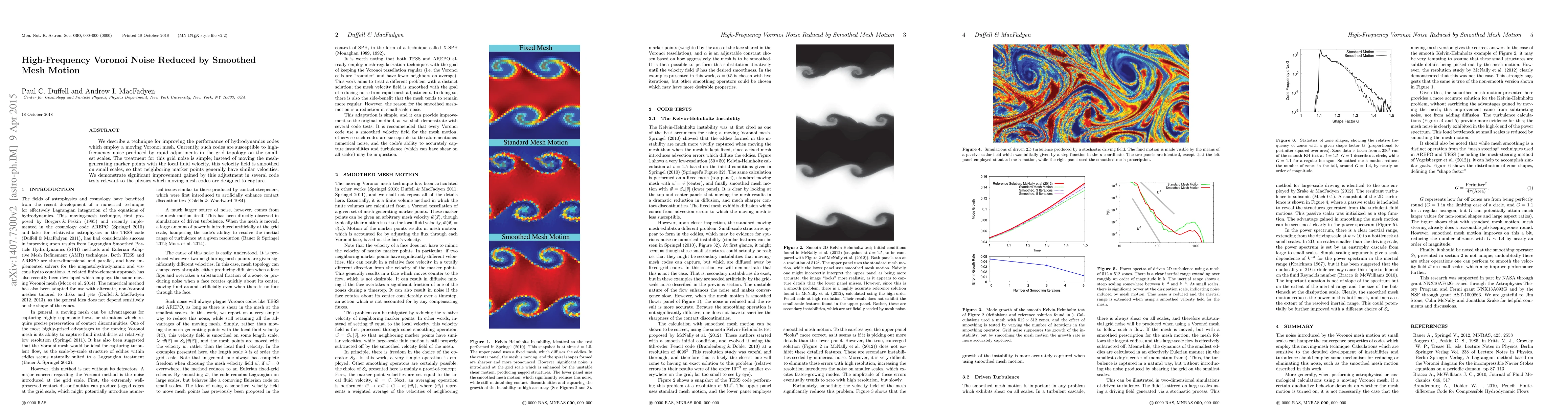 This paper proposes a technique to reduce high-frequency noise in hydrodynamics codes using a moving Voronoi mesh by smoothing the local fluid velocity field, leading to more consistent marker point velocities and significant performance improvements in relevant simulations.