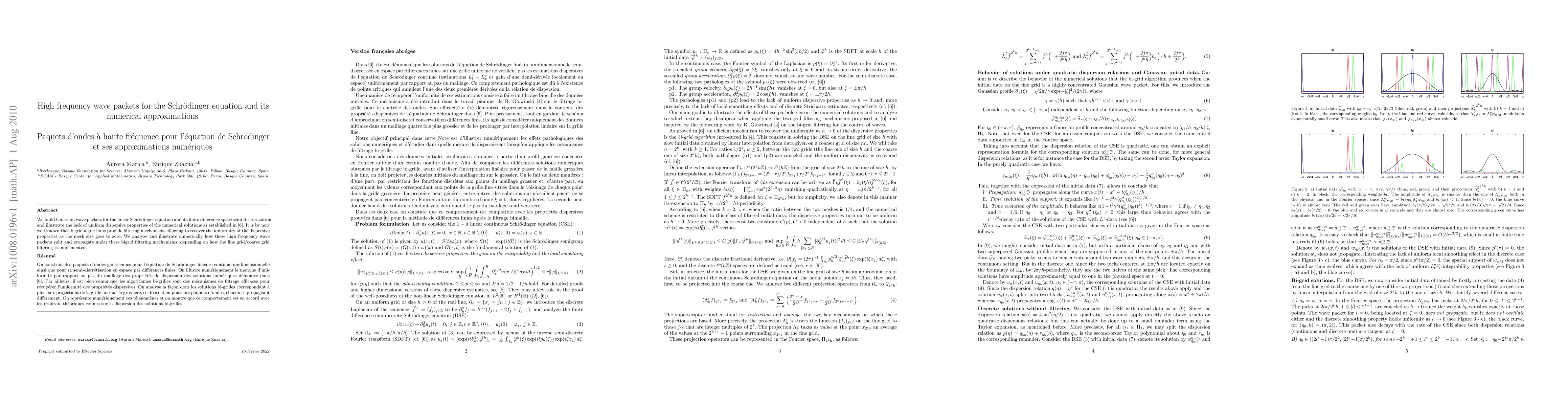 We build Gaussian wave packets for the linear Schr\"odinger equation and its finite difference space semi-discretization and illustrate the lack of uniform dispersive properties of the numerical solutions as established in Ignat, Zuazua, Numerical dispersive schemes for the nonlinear Schr\"odinger equation, SIAM. J. Numer. Anal., 47(2) (2009), 1366-1390. It is by now well known that bigrid algorithms provide filtering mechanisms allowing to recover the uniformity of the dispersive properties as the mesh size goes to zero. We analyze and illustrate numerically how these high frequency wave packets split and propagate under these bigrid filtering mechanisms, depending on how the fine grid/coarse grid filtering is implemented.