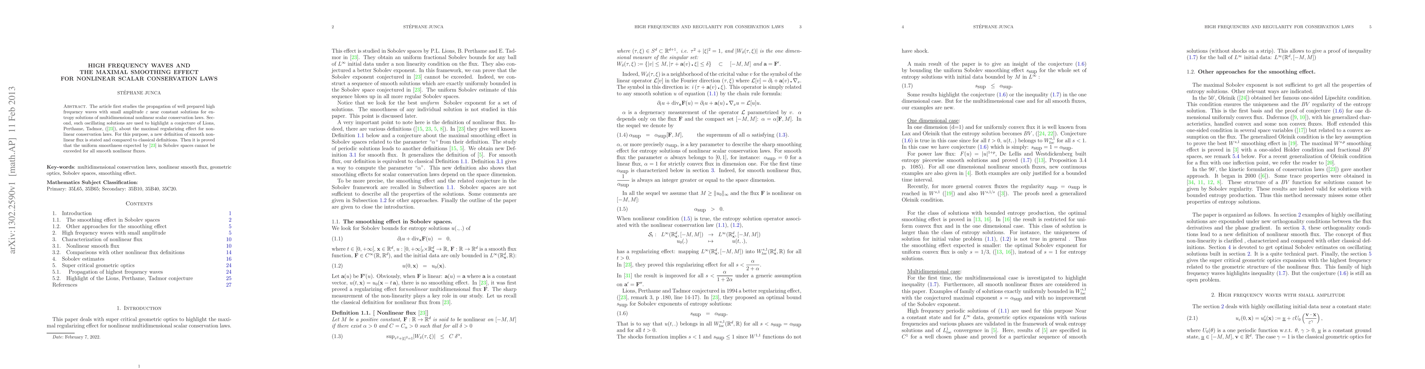 The paper examines high frequency waves in nonlinear scalar conservation laws, demonstrating their role in proving a conjecture about maximal smoothing effects and introducing a novel nonlinear flux definition to support this. It concludes that the level of smoothness achievable in Sobolev spaces cannot be surpassed.
