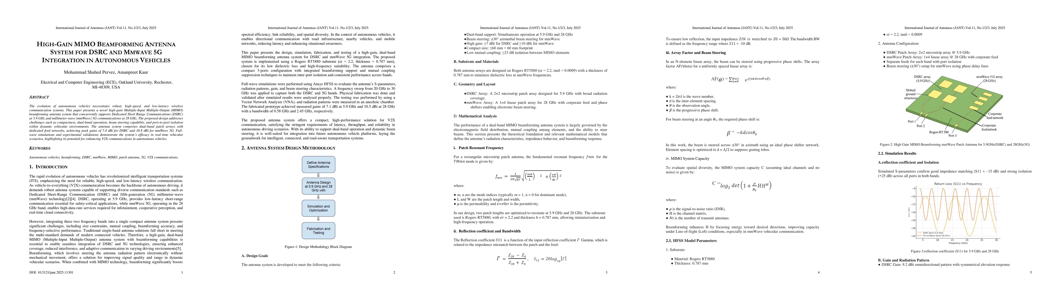 A new MIMO beamforming antenna system supports both DSRC at 5.9 GHz and mmwave 5G at 28 GHz for autonomous vehicles, addressing challenges like compactness and beam steering.