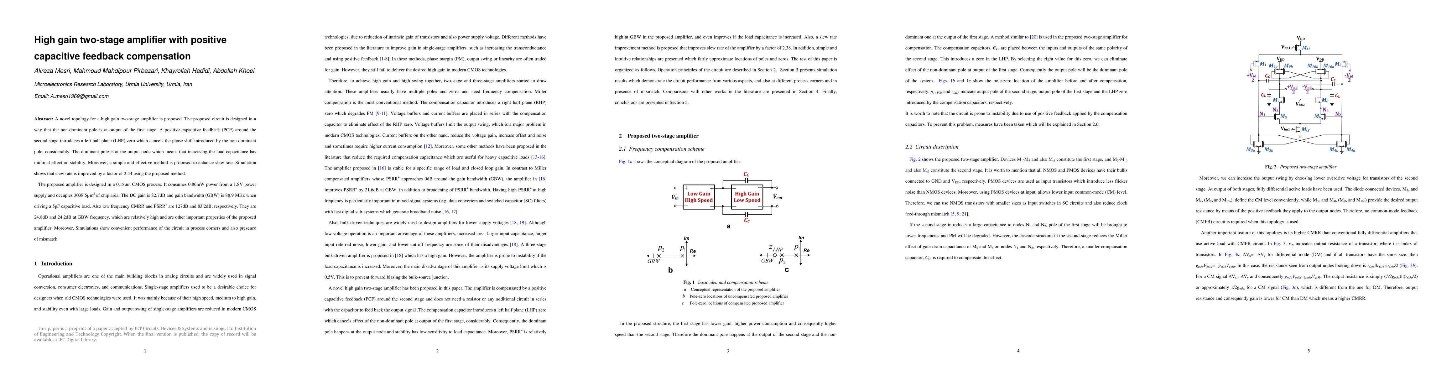 A new amplifier design featuring positive capacitive feedback improves gain and reduces stability issues, achieving a 2.44x increase in slew rate while consuming minimal power and occupying a small chip area.
