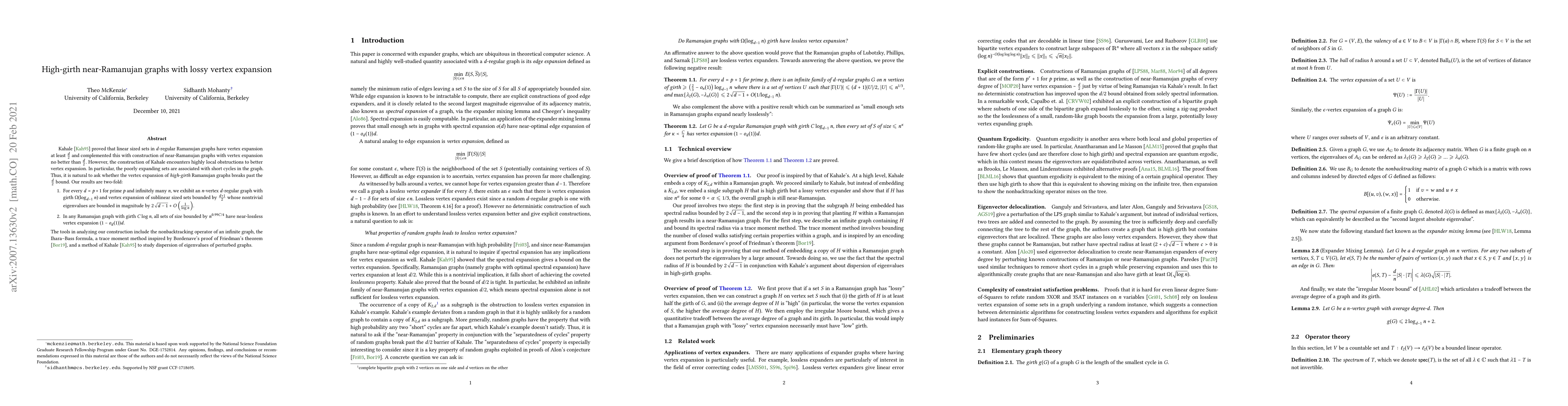 This paper constructs high-girth near-Ramanujan graphs that exhibit improved vertex expansion for sublinear sized sets, demonstrating that girth significantly influences expansion properties. The authors utilize advanced tools like the nonbacktracking operator and a trace moment method to achieve their results.