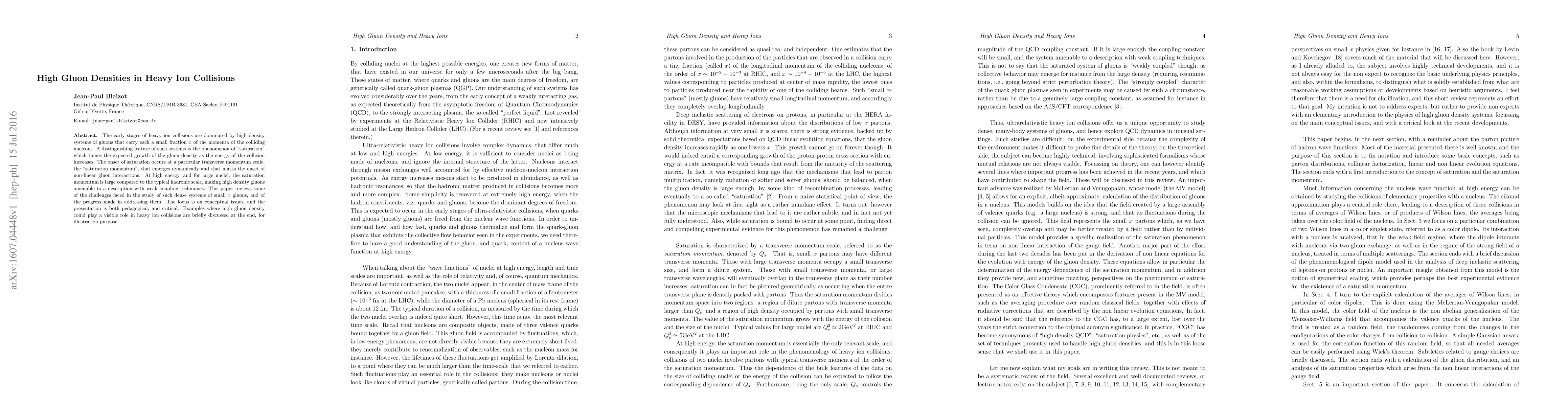 The early stages of heavy ion collisions are dominated by high density systems of gluons that carry each a small fraction $x$ of the momenta of the colliding nucleons. A distinguishing feature of such systems is the phenomenon of "saturation" which tames the expected growth of the gluon density as the energy of the collision increases. The onset of saturation occurs at a particular transverse momentum scale, the "saturation momentum", that emerges dynamically and that marks the onset of non-linear gluon interactions. At high energy, and for large nuclei, the saturation momentum is large compared to the typical hadronic scale, making high density gluons amenable to a description with weak coupling techniques. This paper reviews some of the challenges faced in the study of such dense systems of small $x$ gluons, and of the progress made in addressing them. The focus is on conceptual issues, and the presentation is both pedagogical, and critical. Examples where high gluon density could play a visible role in heavy ion collisions are briefly discussed at the end, for illustration purpose.