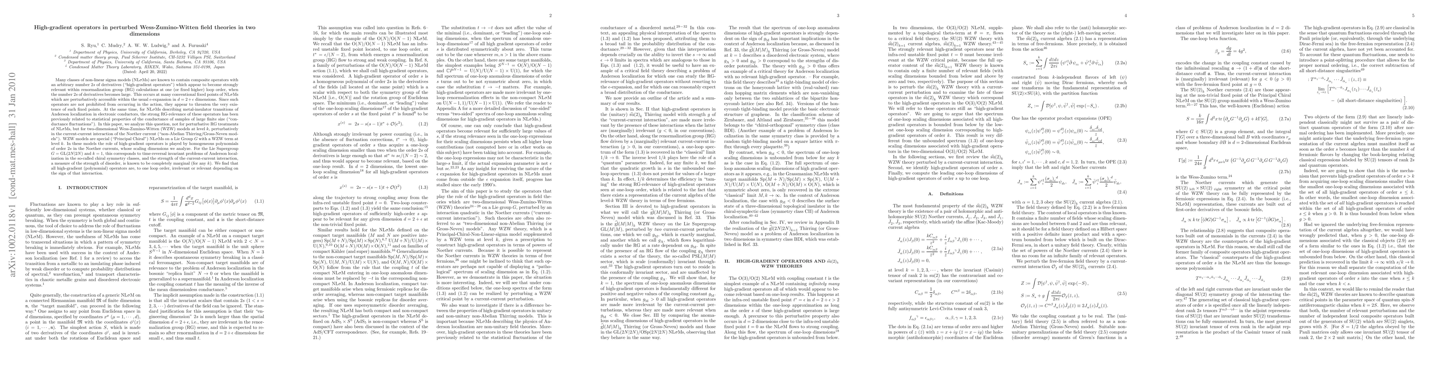 Many classes of non-linear sigma models (NLSMs) are known to contain composite operators with an arbitrary number 2s of derivatives ("high-gradient operators") which appear to become strongly relevant within RG calculations at one (or fixed higher) loop order, when the number 2s of derivatives becomes large. This occurs at many conventional fixed points of NLSMs which are perturbatively accessible within the usual epsilon-expansion in d=2+\epsilon dimensions. Since such operators are not prohibited from occurring in the action, they appear to threaten the very existence of such fixed points. At the same time, for NLSMs describing metal-insulator transitions of Anderson localization in electronic conductors, the strong RG-relevance of these operators has been previously related to statistical properties of the conductance of samples of large finite size ("conductance fluctuations"). In this paper, we analyze this question, not for perturbative RG treatments of NLSMs, but for 2d Wess-Zumino-Witten (WZW) models at level k, perturbatively in the current-current interaction of the Noether current. WZW models are special ("Principal Chiral") NLSMs on a Lie Group G with a WZW term at level k. In these models the role of high-gradient operators is played by homogeneous polynomials of order 2s in the Noether currents, whose scaling dimensions we analyze. For the Lie Supergroup G=GL(2N|2N) and k=1, this corresponds to time-reversal invariant problems of Anderson localization in the so-called chiral symmetry classes, and the strength of the current-current interaction, a measure of the strength of disorder, is known to be completely marginal (for any k). We find that all high-gradient (polynomial) operators are, to one loop order, irrelevant or relevant depending on the sign of that interaction.