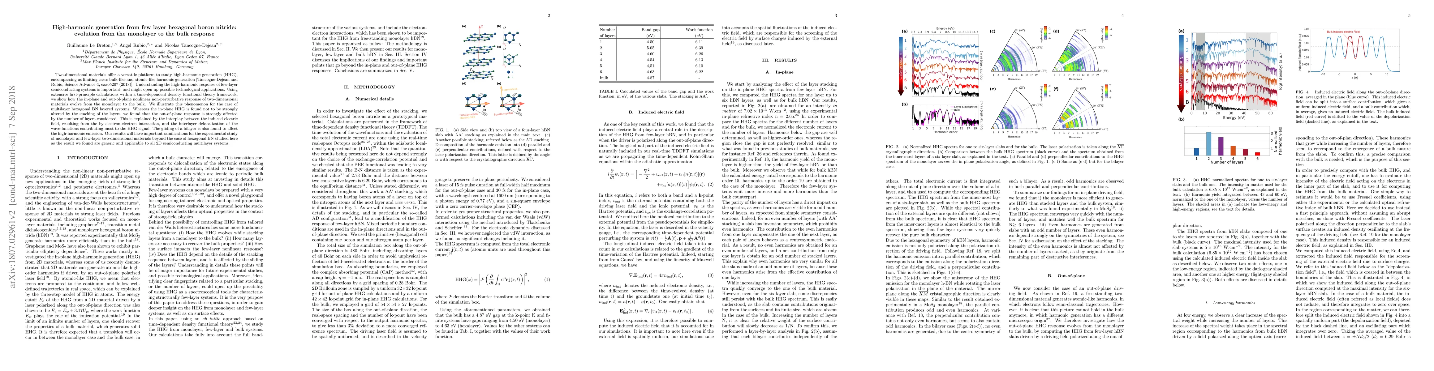 The study investigates high-harmonic generation (HHG) in few-layer hexagonal boron nitride (hBN), revealing that while in-plane HHG remains largely unaffected by layer stacking, out-of-plane HHG is significantly influenced by the number of layers due to electron-electron interactions and interlayer wave-function delocalization. These findings have broad implications for the HHG in other two-dimensional semiconducting multilayer systems.