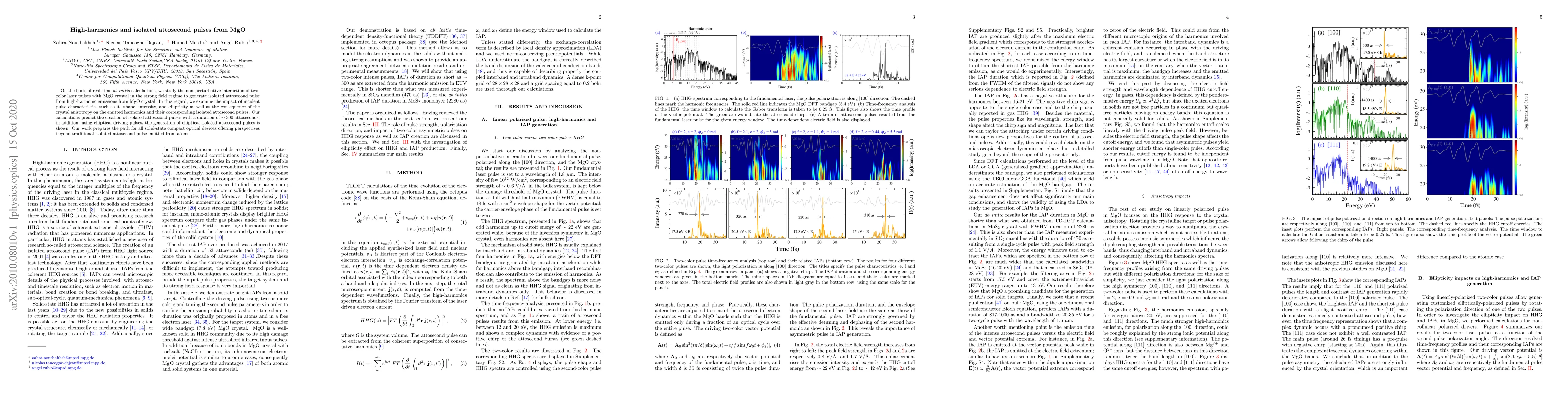 Researchers created isolated attosecond pulses from high-harmonic emissions in magnesium oxide crystals using two-color laser pulses. Their calculations predict the generation of pulses with a duration of around 300 attoseconds.