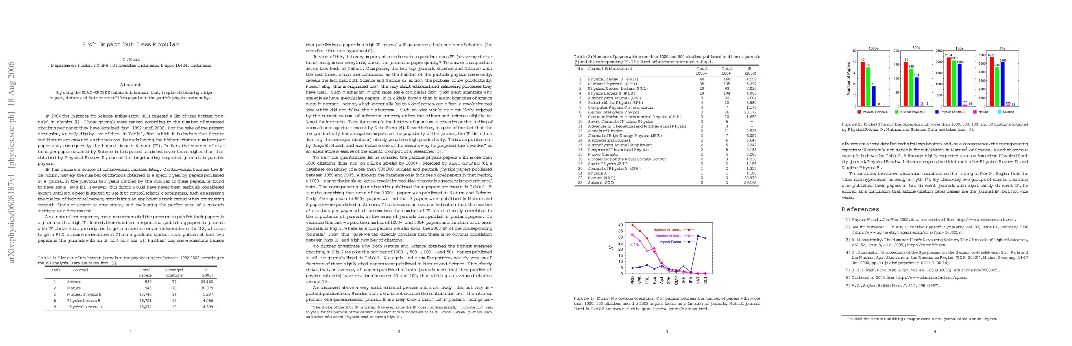 By using the SLAC-SPIRES database it is shown that, in spite of obtaining a high impact, Nature and Science are still less popular in the particle physics community.