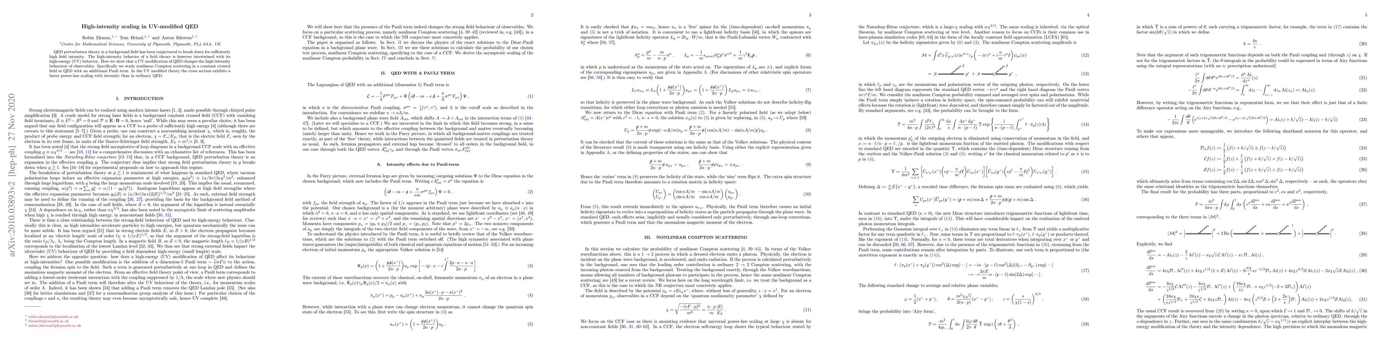 QED perturbation theory in a background field has been conjectured to break down for sufficiently high field intensity. The high-intensity behavior of a field theory is however intertwined with its high-energy (UV) behavior. Here we show that a UV modification of QED changes the high-intensity behaviour of observables. Specifically we study non-linear Compton scattering in a constant crossed field in QED with an additional Pauli term. In the UV modified theory the cross section exhibits a faster power-law scaling with intensity than in ordinary QED.