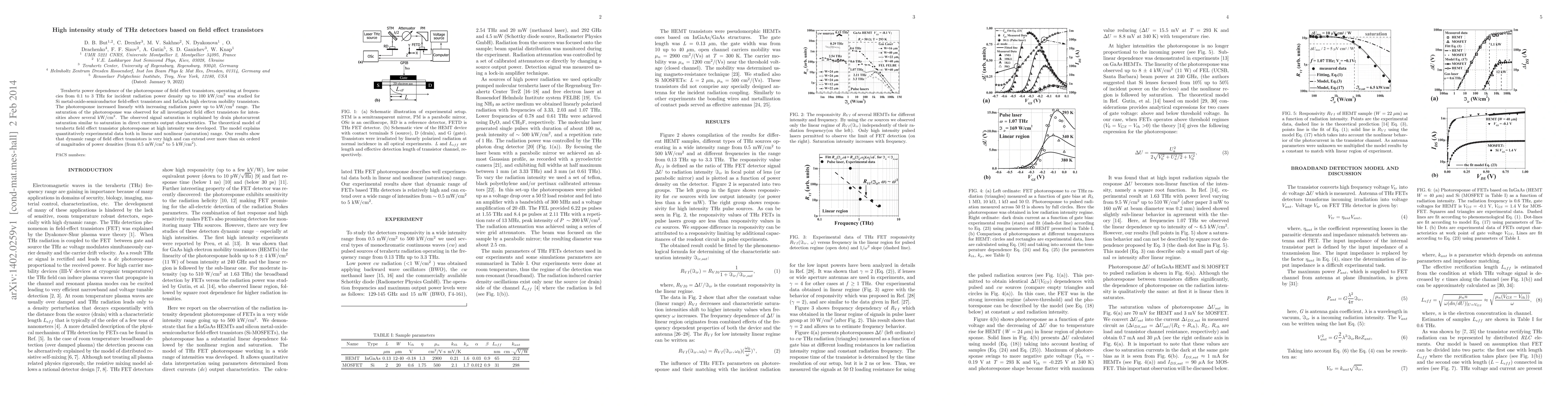 This study investigates the terahertz photoresponse of Si MOSFETs and InGaAs HEMTs under high-intensity radiation, finding linear response up to several kW/cm² followed by saturation. A theoretical model explains the observed behavior, demonstrating a dynamic range spanning over six orders of magnitude in power densities.