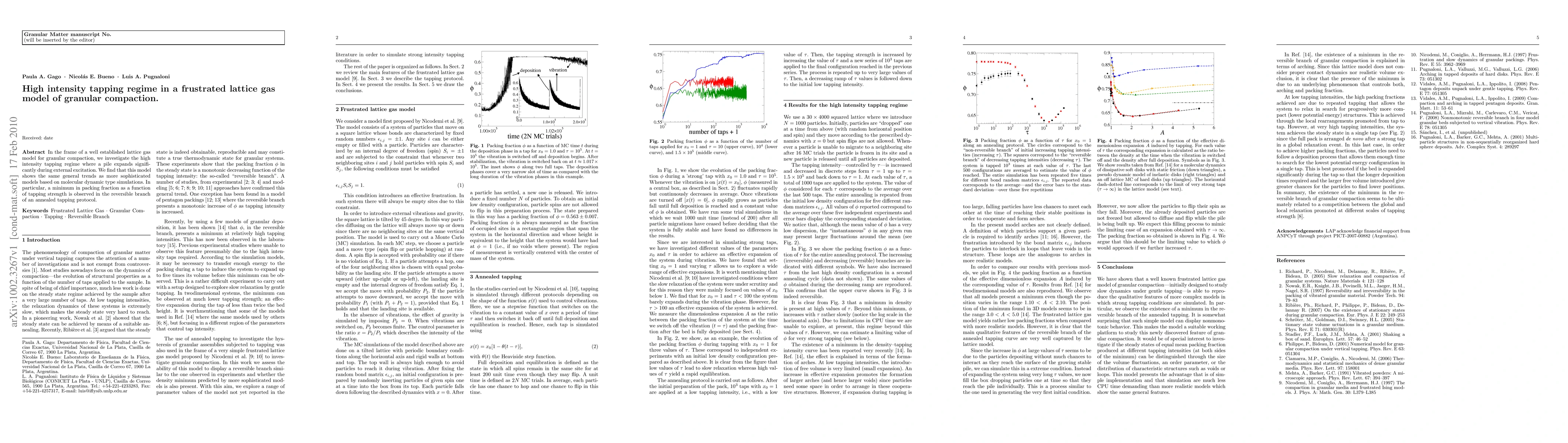 This study explores granular compaction in a lattice gas model under high intensity tapping, revealing significant expansion during external excitation. The model exhibits a minimum in packing fraction with tapping strength, mirroring trends seen in more complex molecular dynamic simulations.