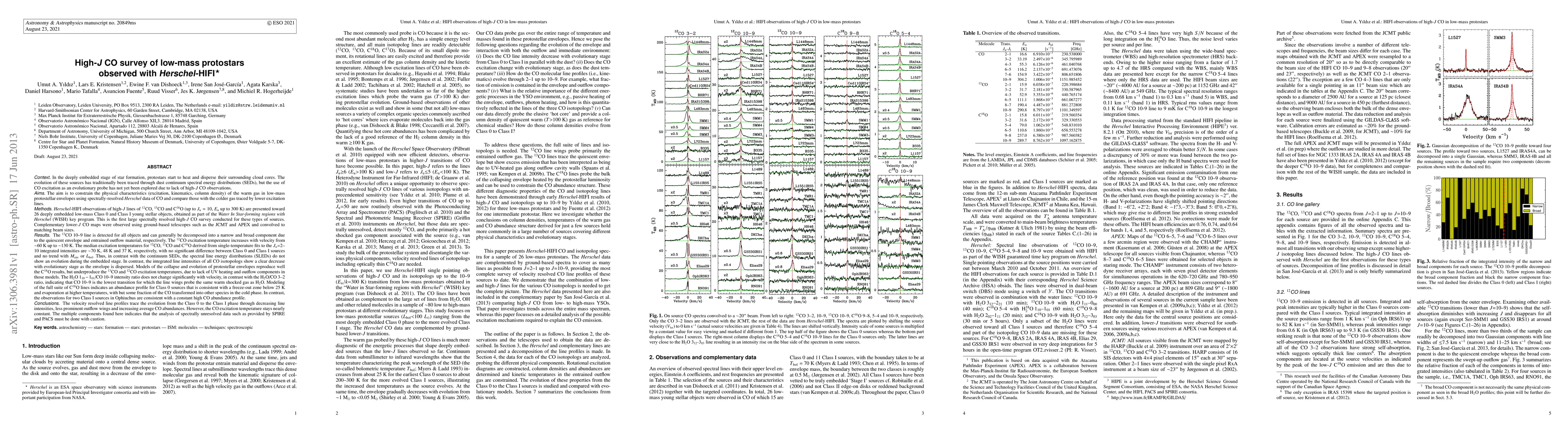 The evolution of deeply embedded young stellar objects (YSOs) has traditionally been traced through dust continuum spectral energy distributions (SEDs), but the use of CO excitation as an evolutionary probe has not yet been explored due to lack of high-J CO observations. The aim is to constrain the physical characteristics (excitation, kinematics, column density) of the warm gas toward 26 low-mass Class 0 and I YSOs using spectrally-resolved Herschel Space Observatory data of high-J lines of CO. Data are complemented by ground-based observations from APEX and the JCMT to compare those with the colder gas traced by lower-J CO lines. This is the first large spectrally resolved high-J CO survey conducted for these types of sources. The median excitation temperatures for 12CO, 13CO and C18O derived from single-temperature fits to the J_u=2-10 integrated intensities are ~70K, 48K and 37K, respectively, with no significant difference between Class 0 and I sources and no trend with M_env or L_bol. Thus, in contrast with the continuum SEDs, the spectral line energy distributions (SLEDs) do not show an evolution during the embedded stage. In contrast, the integrated line intensities of all CO isotopologs show a clear decrease with evolutionary stage as the envelope is dispersed. The H2O 110-101/CO 10-9 intensity ratio does not change significantly with velocity, in contrast with the H2O/CO 3-2 ratio, indicating that CO 10-9 is the lowest transition for which the line wings probe the same warm shocked gas as H2O. Modeling of the full suite of C18O lines indicates an abundance profile for Class 0 sources that is consistent with a freeze-out zone below 25 K and evaporation at higher temperatures, with but some fraction of the CO transformed into other species in the cold phase. In contrast, observations for two Class I sources in Ophiuchus are consistent with a constant high CO abundance profile.