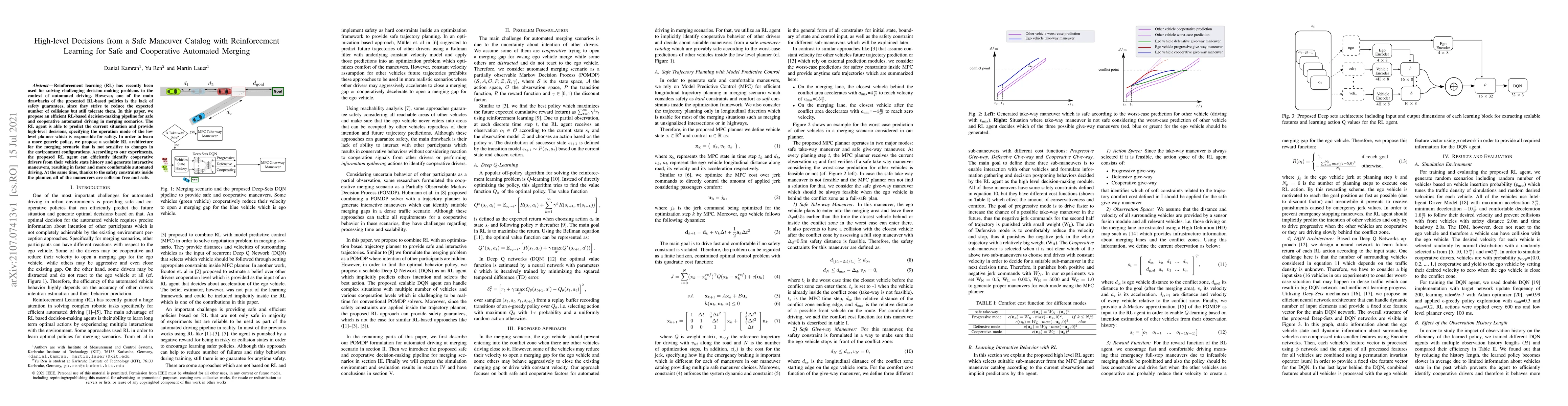 A reinforcement learning approach is proposed to enable safe and cooperative automated merging in self-driving cars, ensuring collision-free maneuvers.