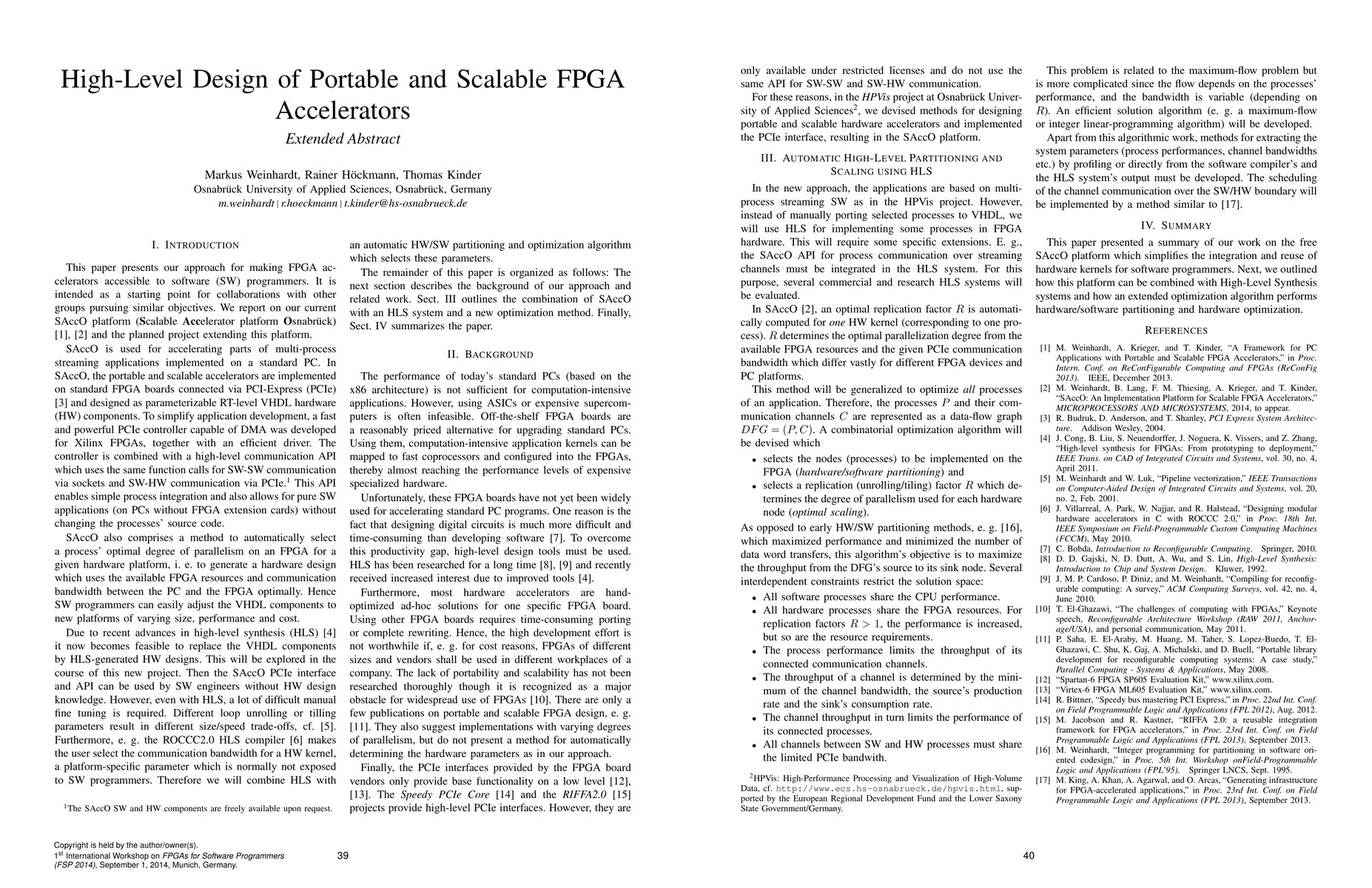 This paper presents our approach for making FPGA accelerators accessible to software (SW) programmers. It is intended as a starting point for collaborations with other groups pursuing similar objectives. We report on our current SAccO platform (Scalable Accelerator platform Osnabr\"uck) and the planned project extending this platform.