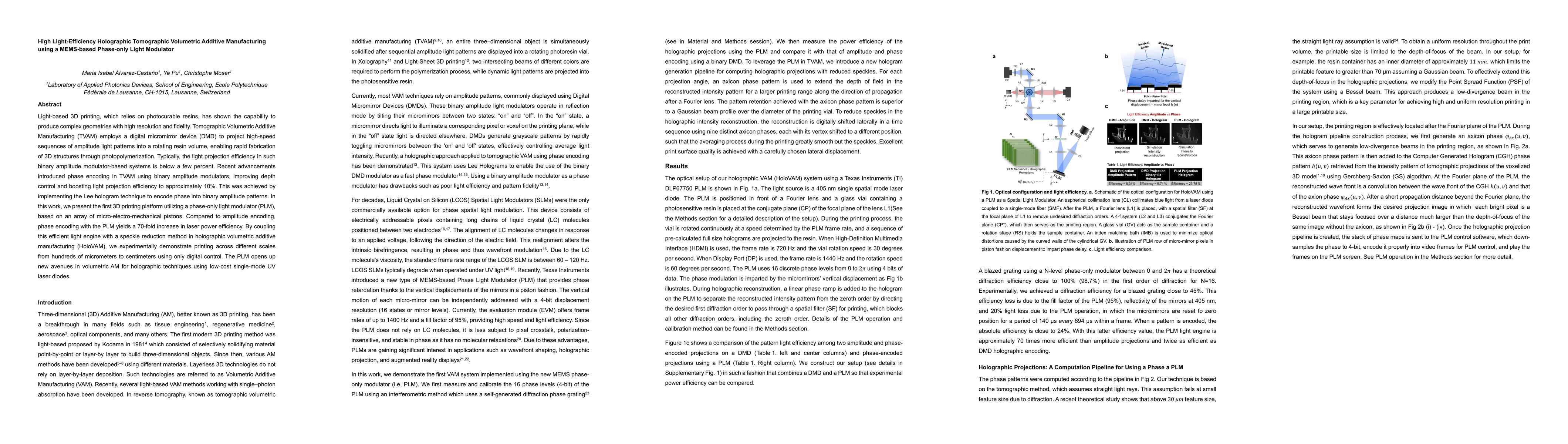 This work distinguishes itself by being the first to utilize a PLM in volumetric AM, surpassing the efficiency of previous amplitude modulator-based systems and opening new avenues for low-cost, high-efficiency holographic techniques.