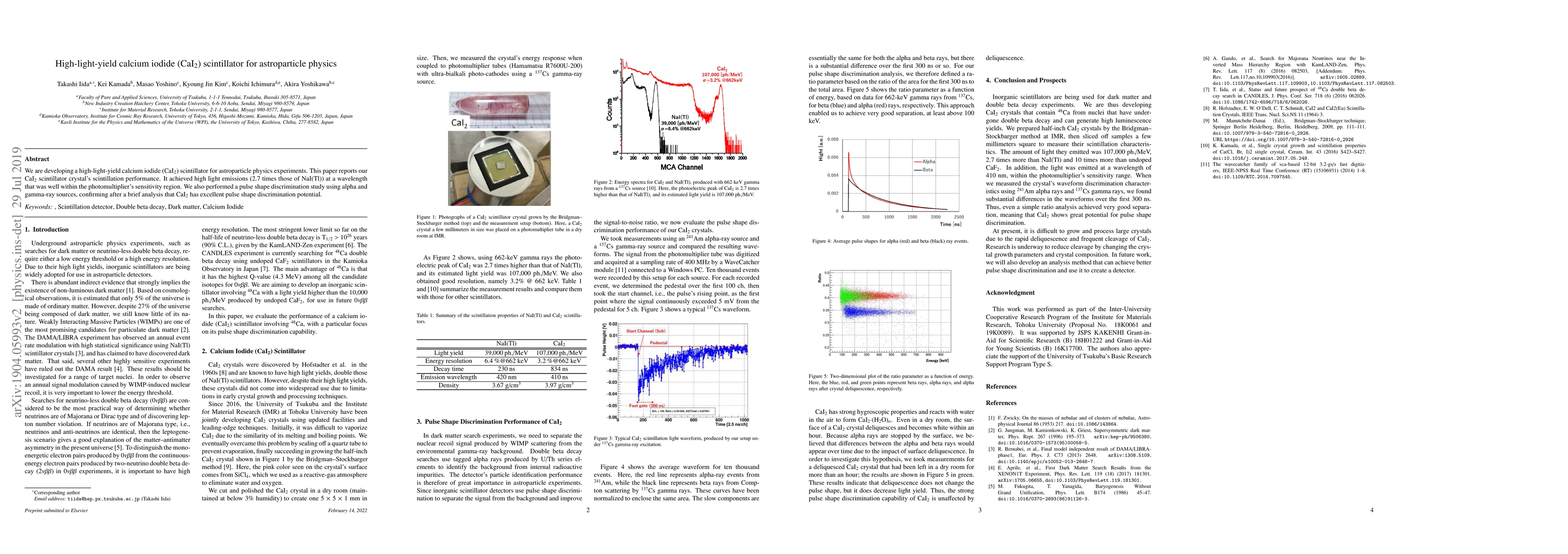 This paper reports the development of a high light yield calcium iodide (CaI2) scintillator for astroparticle physics, achieving 2.7 times the light emission of NaI(Tl) and demonstrating excellent pulse shape discrimination potential for alpha and gamma sources.