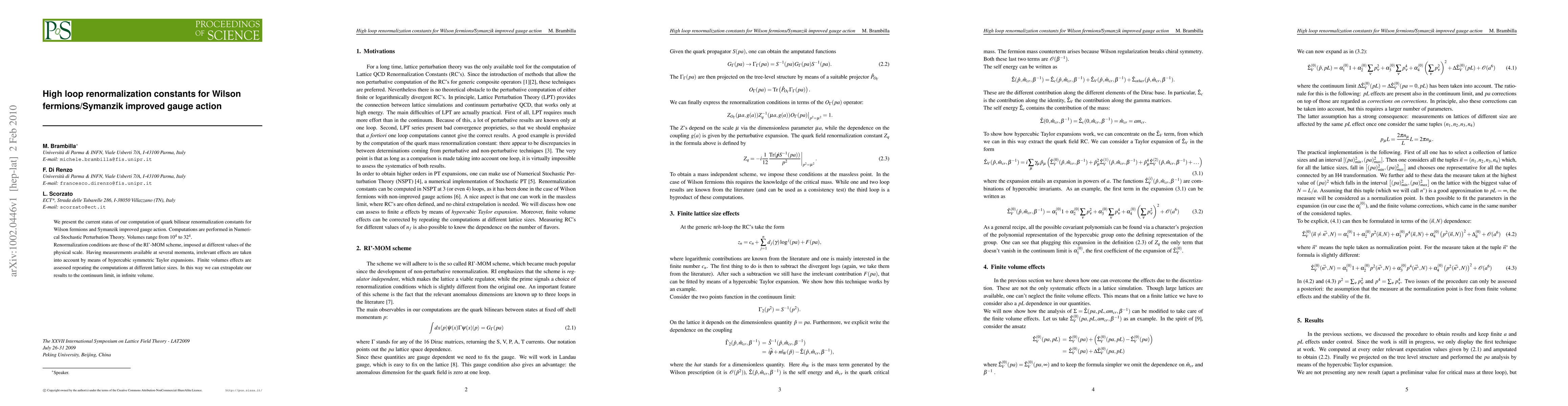 We present the current status of our computation of quark bilinear renormalization constants for Wilson fermions and Symanzik improved gauge action. Computations are performed in Numerical Stochastic Perturbation Theory. Volumes range from 10^4 to 32^4. Renormalization conditions are those of the RI'-MOM scheme, imposed at different values of the physical scale. Having measurements available at several momenta, irrelevant effects are taken into account by means of hypercubic symmetric Taylor expansions. Finite volumes effects are assessed repeating the computations at different lattice sizes. In this way we can extrapolate our results to the continuum limit, in infinite volume.