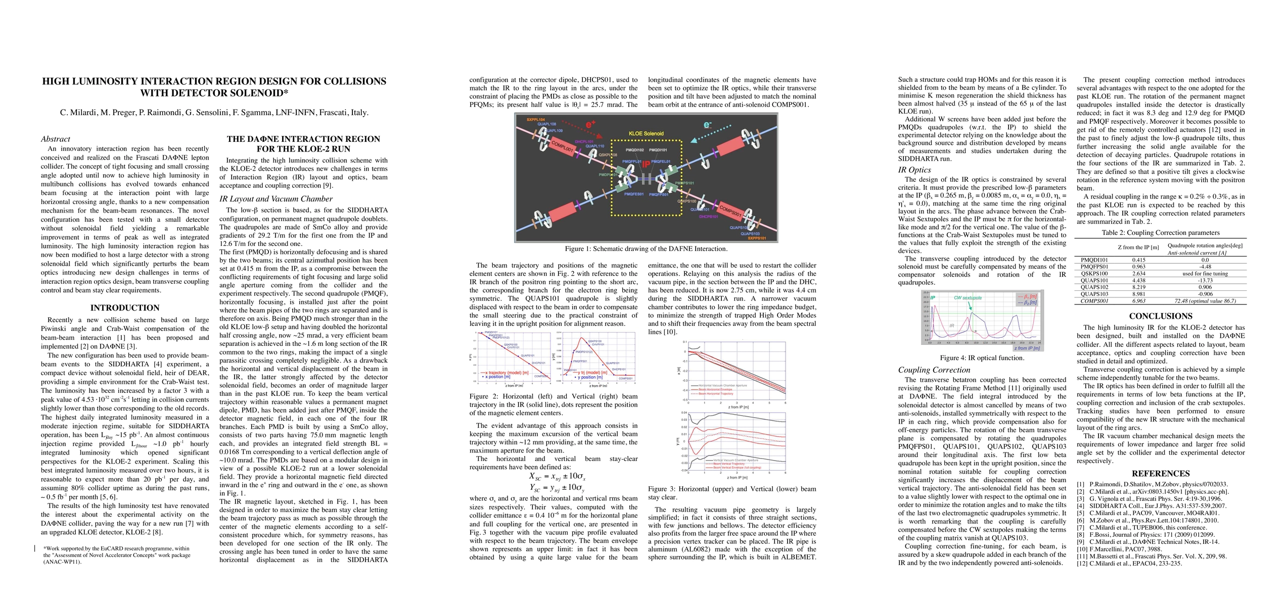 An innovatory interaction region has been recently conceived and realized on the Frascati DA{\Phi}NE lepton collider. The concept of tight focusing and small crossing angle adopted until now to achieve high luminosity in multibunch collisions has evolved towards enhanced beam focusing at the interaction point with large horizontal crossing angle, thanks to a new compensation mechanism for the beam-beam resonances. The novel configuration has been tested with a small detector without solenoidal field yielding a remarkable improvement in terms of peak as well as integrated luminosity. The high luminosity interaction region has now been modified to host a large detector with a strong solenoidal field which significantly perturbs the beam optics introducing new design challenges in terms of interaction region optics design, beam transverse coupling control and beam stay clear requirements