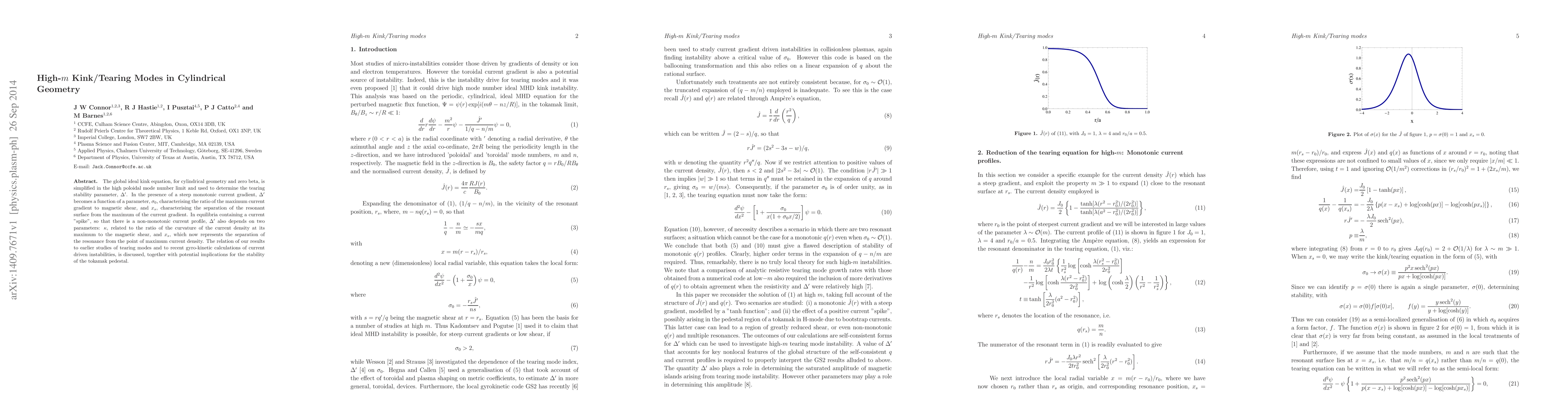 The global ideal kink equation, for cylindrical geometry and zero beta, is simplified in the high poloidal mode number limit and used to determine the tearing stability parameter, $\Delta^\prime$. In the presence of a steep monotonic current gradient, $\Delta^\prime$ becomes a function of a parameter, $\sigma_0$, characterising the ratio of the maximum current gradient to magnetic shear, and $x_s$, characterising the separation of the resonant surface from the maximum of the current gradient. In equilibria containing a current "spike", so that there is a non-monotonic current profile, $\Delta^\prime$ also depends on two parameters: $\kappa$, related to the ratio of the curvature of the current density at its maximum to the magnetic shear, and $x_s$, which now represents the separation of the resonance from the point of maximum current density. The relation of our results to earlier studies of tearing modes and to recent gyro-kinetic calculations of current driven instabilities, is discussed, together with potential implications for the stability of the tokamak pedestal.