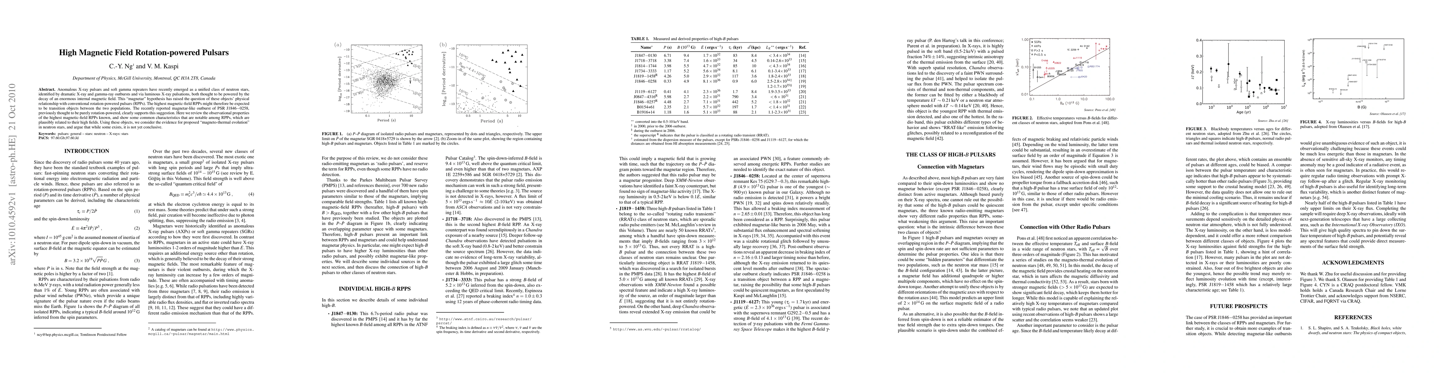 The study reviews observational properties of high magnetic field rotation-powered pulsars (RPPs) and compares them with magnetars, focusing on their magnetic field strengths, X-ray luminosities, and spin characteristics.
