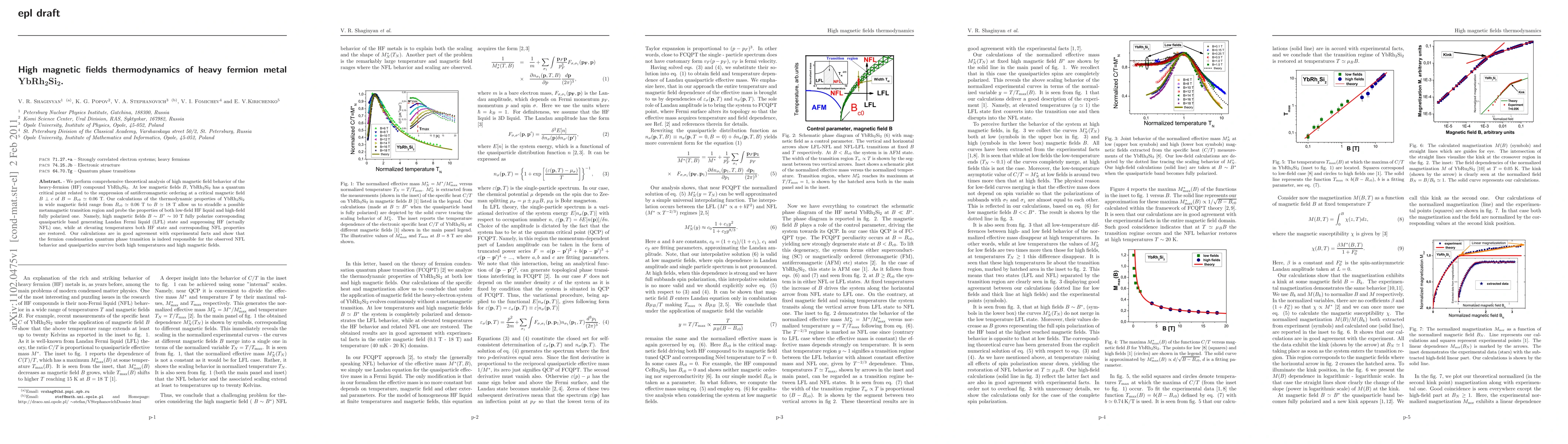 This paper conducts a theoretical analysis of YbRh2Si2 under high magnetic fields, revealing a quantum critical point linked to antiferromagnetic ordering suppression. The study finds that high magnetic fields polarize the quasiparticle band, transitioning the material from a heavy-fermion to a Landau Fermi liquid state, while fermion condensation explains the non-Fermi liquid behavior observed experimentally.