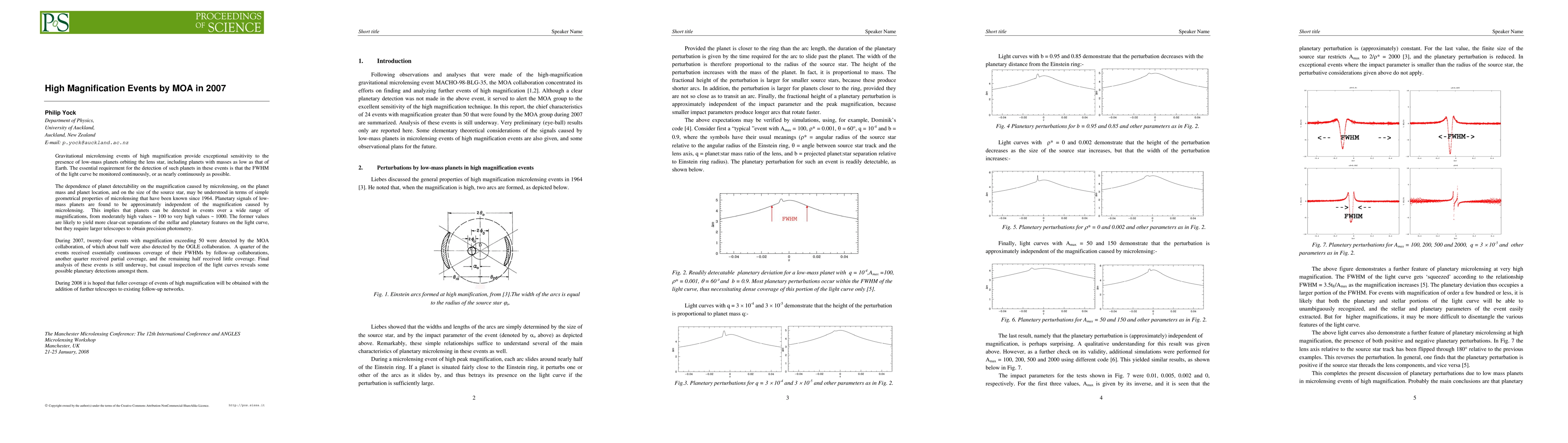 The MOA collaboration detected 24 high magnification gravitational microlensing events in 2007, which enhance the sensitivity to low-mass planets, including Earth-like ones. Continuous monitoring of the light curve's FWHM is crucial for detecting these planets, which can be found across a wide range of magnifications.