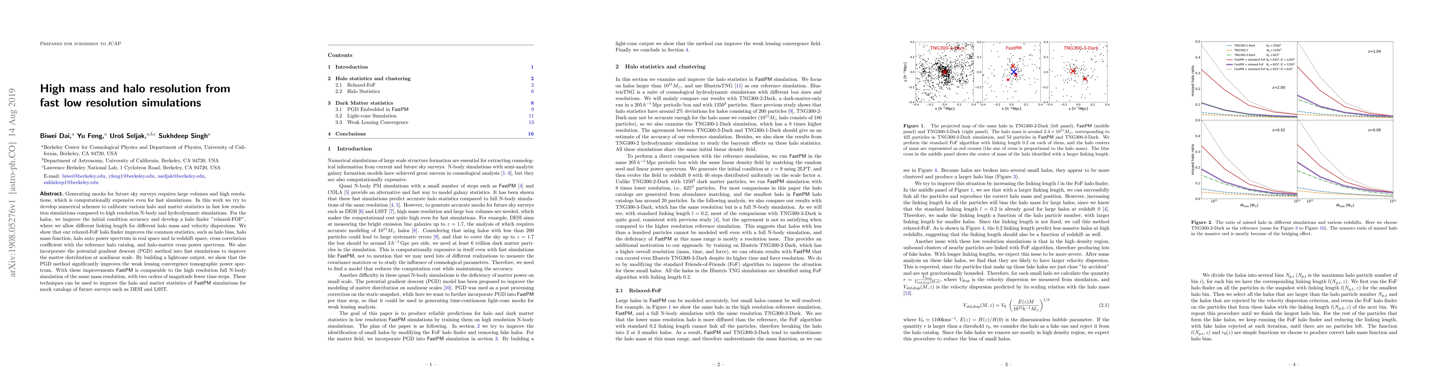 Generating mocks for future sky surveys requires large volumes and high resolutions, which is computationally expensive even for fast simulations. In this work we try to develop numerical schemes to calibrate various halo and matter statistics in fast low resolution simulations compared to high resolution N-body and hydrodynamic simulations. For the halos, we improve the initial condition accuracy and develop a halo finder "relaxed-FOF", where we allow different linking length for different halo mass and velocity dispersions. We show that our relaxed-FoF halo finder improves the common statistics, such as halo bias, halo mass function, halo auto power spectrum in real space and in redshift space, cross correlation coefficient with the reference halo catalog, and halo-matter cross power spectrum. We also incorporate the potential gradient descent (PGD) method into fast simulations to improve the matter distribution at nonlinear scale. By building a lightcone output, we show that the PGD method significantly improves the weak lensing convergence tomographic power spectrum. With these improvements FastPM is comparable to the high resolution full N-body simulation of the same mass resolution, with two orders of magnitude fewer time steps. These techniques can be used to improve the halo and matter statistics of FastPM simulations for mock catalogs of future surveys such as DESI and LSST.
