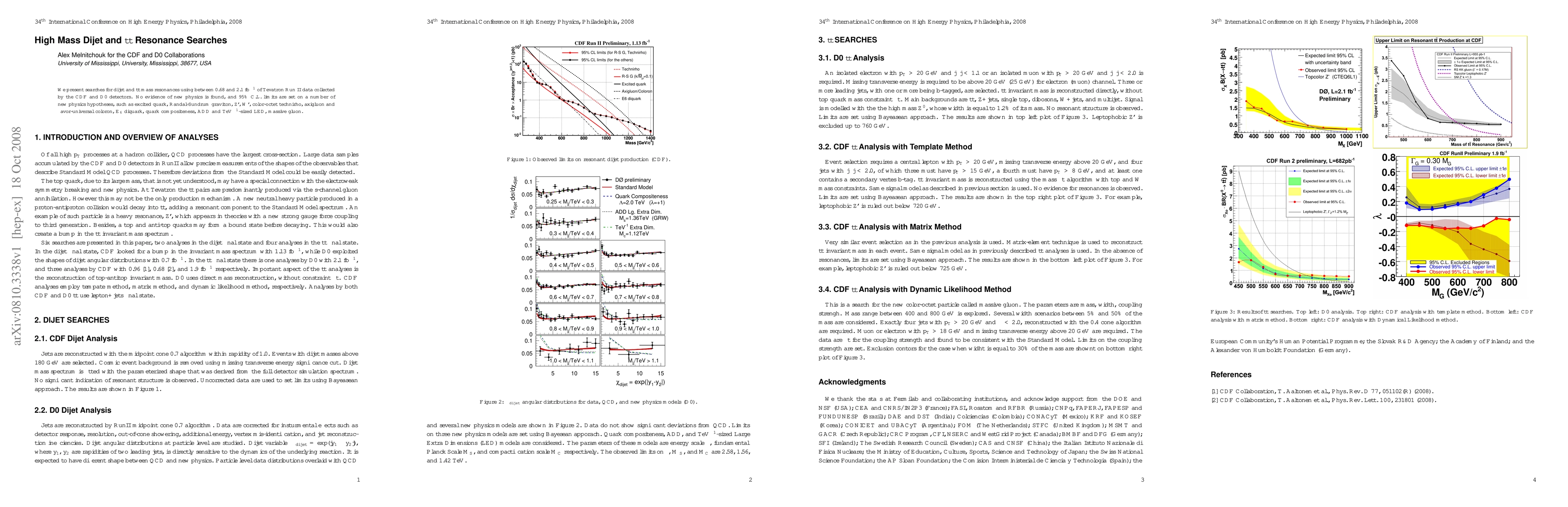 This paper reports on searches for high mass dijet and ttbar resonances using Tevatron Run II data from CDF and D0 detectors, finding no evidence of new physics and setting 95% confidence limits on various new physics hypotheses.