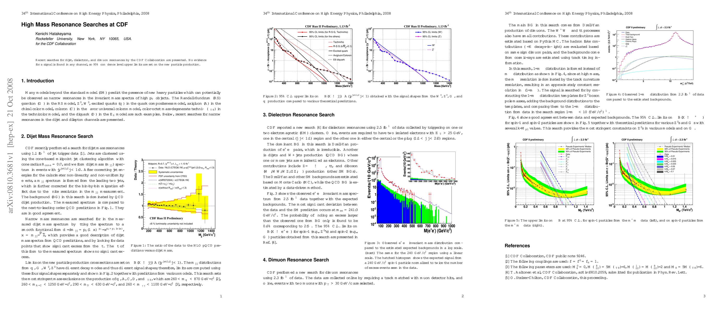 The CDF Collaboration reports results from searches for high mass resonances in dijet, dielectron, and dimuon channels, finding no evidence for new particles, thus setting 95% confidence level upper limits on their production.