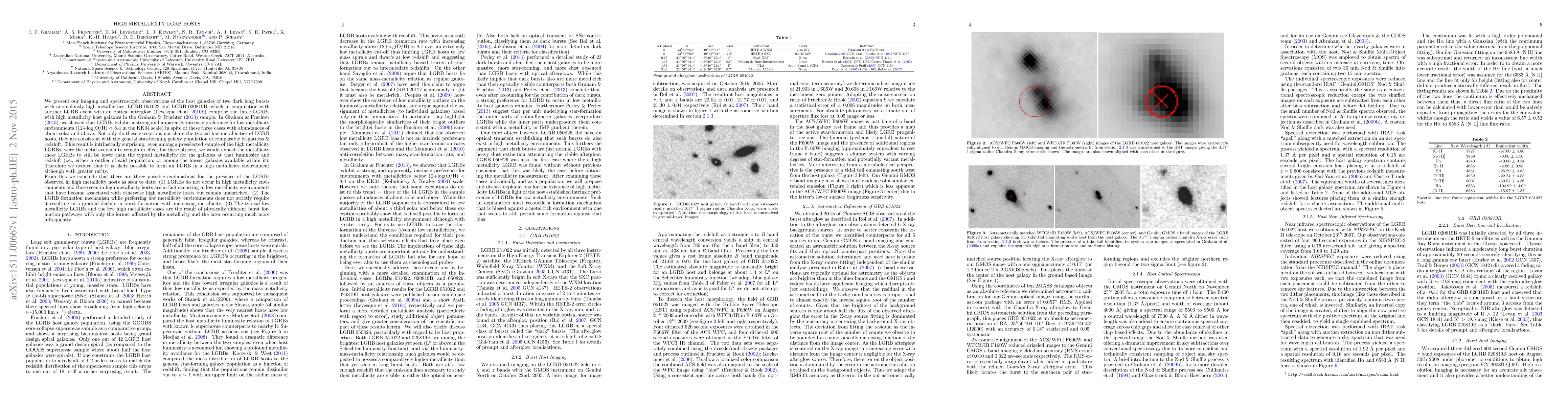 We present our imaging and spectroscopic observations of the host galaxies of two dark long bursts with anomalously high metallicities, LGRB 051022 and LGRB 020819B, which in conjunction with another LGRB event with an optical afterglow comprise the three LGRBs with high metallicity host galaxies in the Graham & Fruchter (2013) sample. In Graham & Fruchter (2013), we showed that LGRBs exhibit a strong and apparently intrinsic preference for low metallicity environments (12+log(O/H) < 8.4 in the KK04 scale) in spite of these three cases with abundances of about solar and above. These exceptions however are consistent with the general star-forming galaxy population of comparable brightness & redshift. This is surprising: even among a preselected sample of high metallicity LGRBs, were the metal aversion to remain in effect for these objects, we would expect their metallicity to still be lower than the typical metallicity for the galaxies at that luminosity and redshift. Therefore we deduce that it is possible to form an LGRB in a high metallicity environment although with greater rarity. From this we conclude that there are three possible explanations for the presence of the LGRBs observed in high metallicity hosts as seen to date: (1) LGRBs do not occur in high metallicity environments and those seen in high metallicity hosts are in fact occurring in low metallicity environments that have become associated with otherwise high metallicity hosts but remain unenriched. (2) The LGRB formation mechanism while preferring low metallicity environments does not strictly require it resulting in a gradual decline in burst formation with increasing metallicity. (3) The typical low metallicity LGRBs and the few high metallicity cases are the result of physically different burst formation pathways with only the former affected by the metallicity and the later occurring much more infrequently.